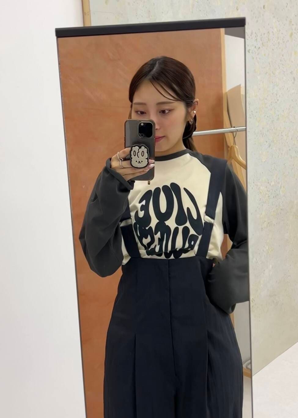 今回はオーバーオールと合わせましたが、デニムやワイドパンツと合わせてカジュアルにまとめるのも可愛いです✨