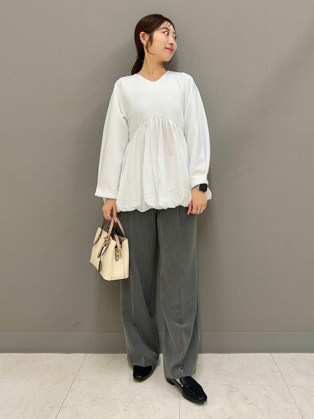 お仕事にピッタリのトップスで、どんなパンツとも合わせやすいです◎