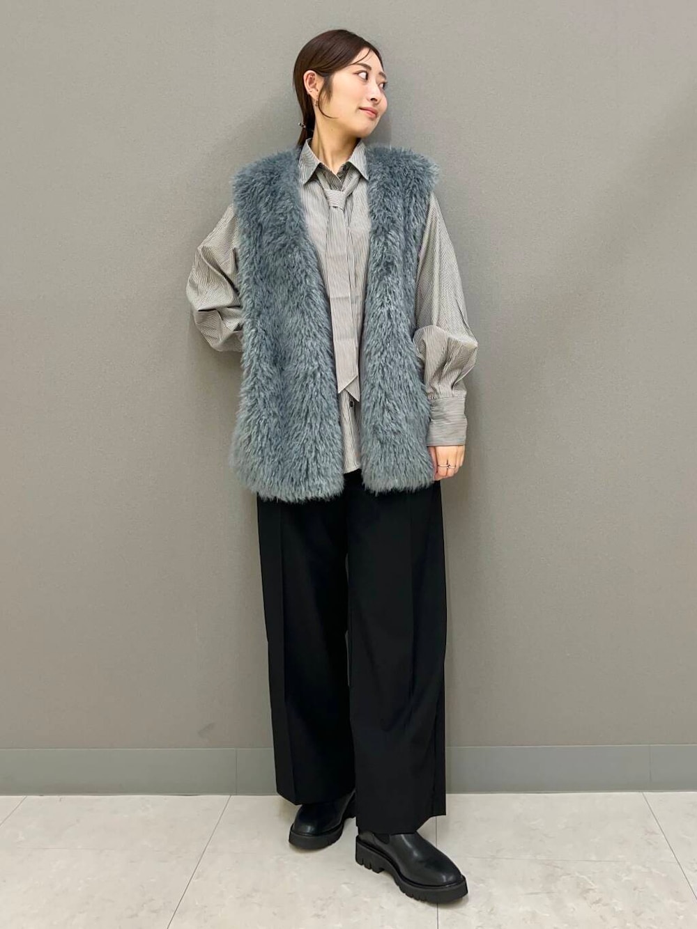 素材感やトーンが違うアイテムなので重すぎないイメージで着ていただけます◎