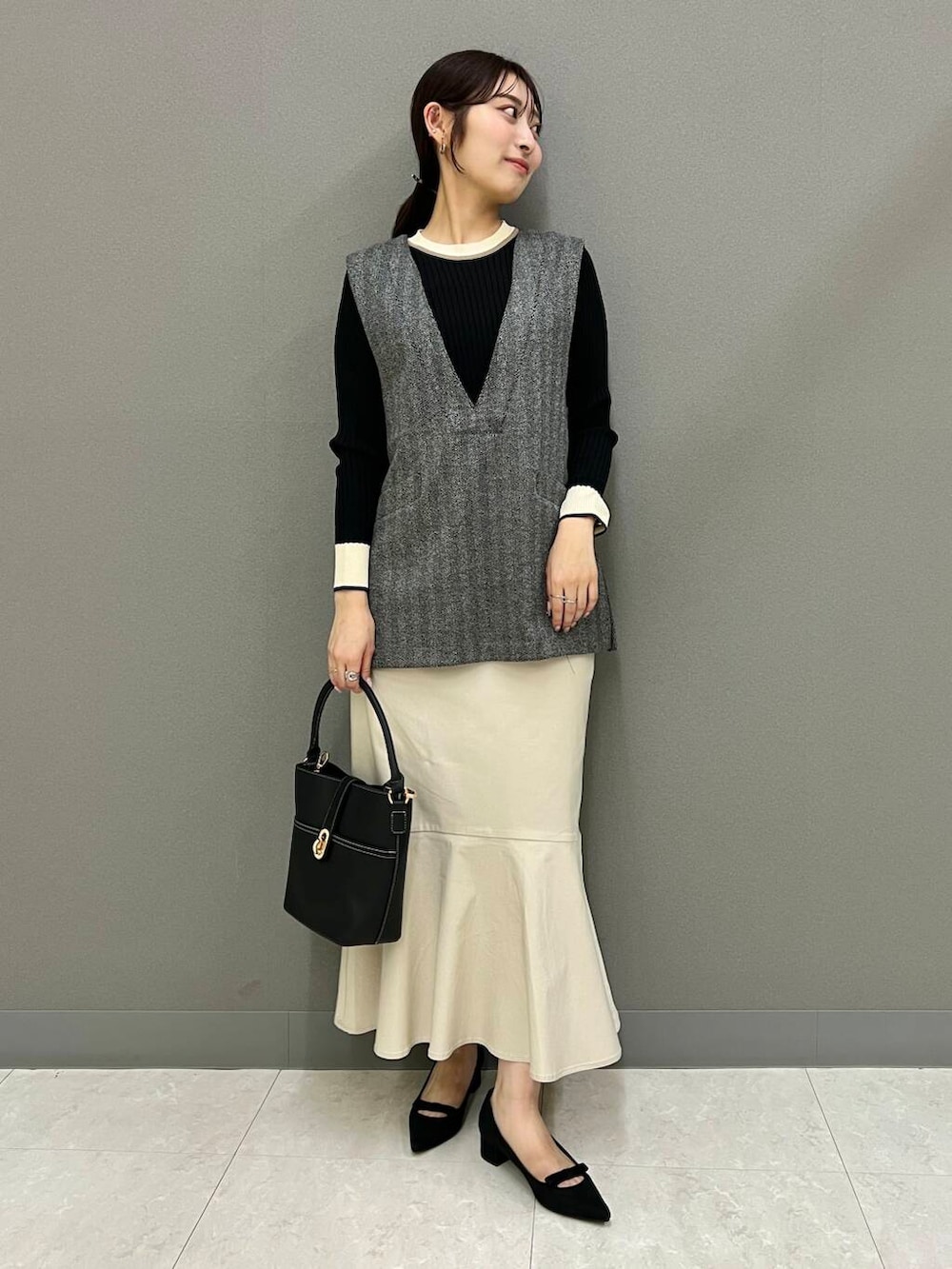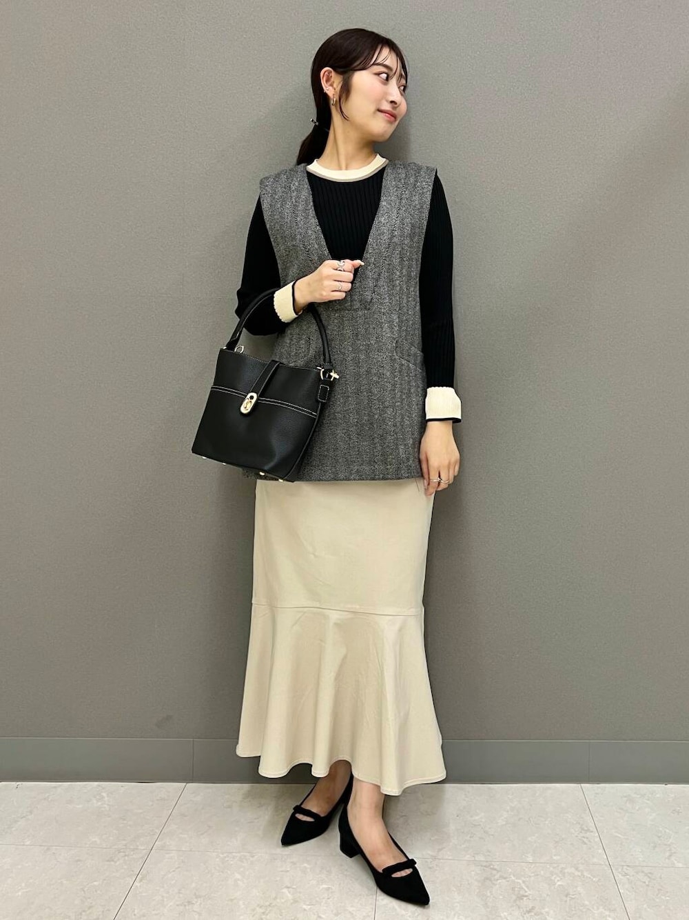 マーメイドスカートと合わせてオフィスにも使えるキレイめコーデにしました!