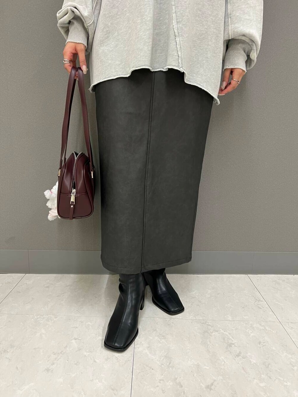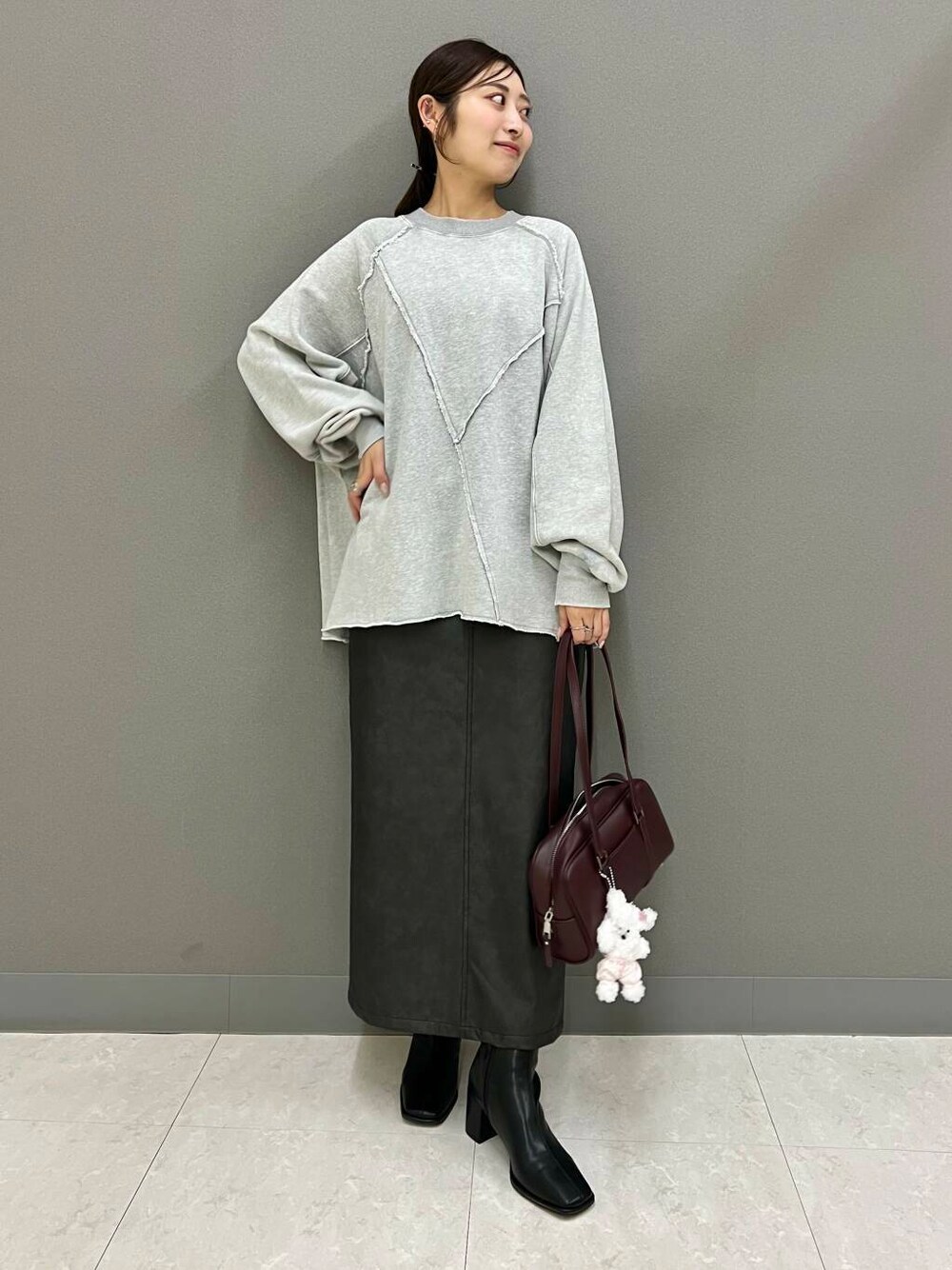 丈感も長く袖のボリューム感も強いので、タイトなスカートと合わせてメリハリをつけました◎