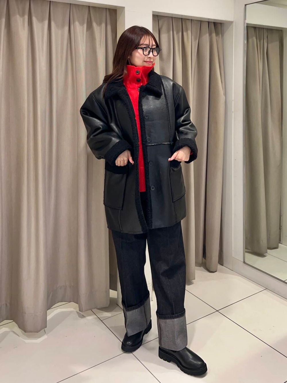 SENSE OF PLACEリバーシブルレザーライクボアジャケット