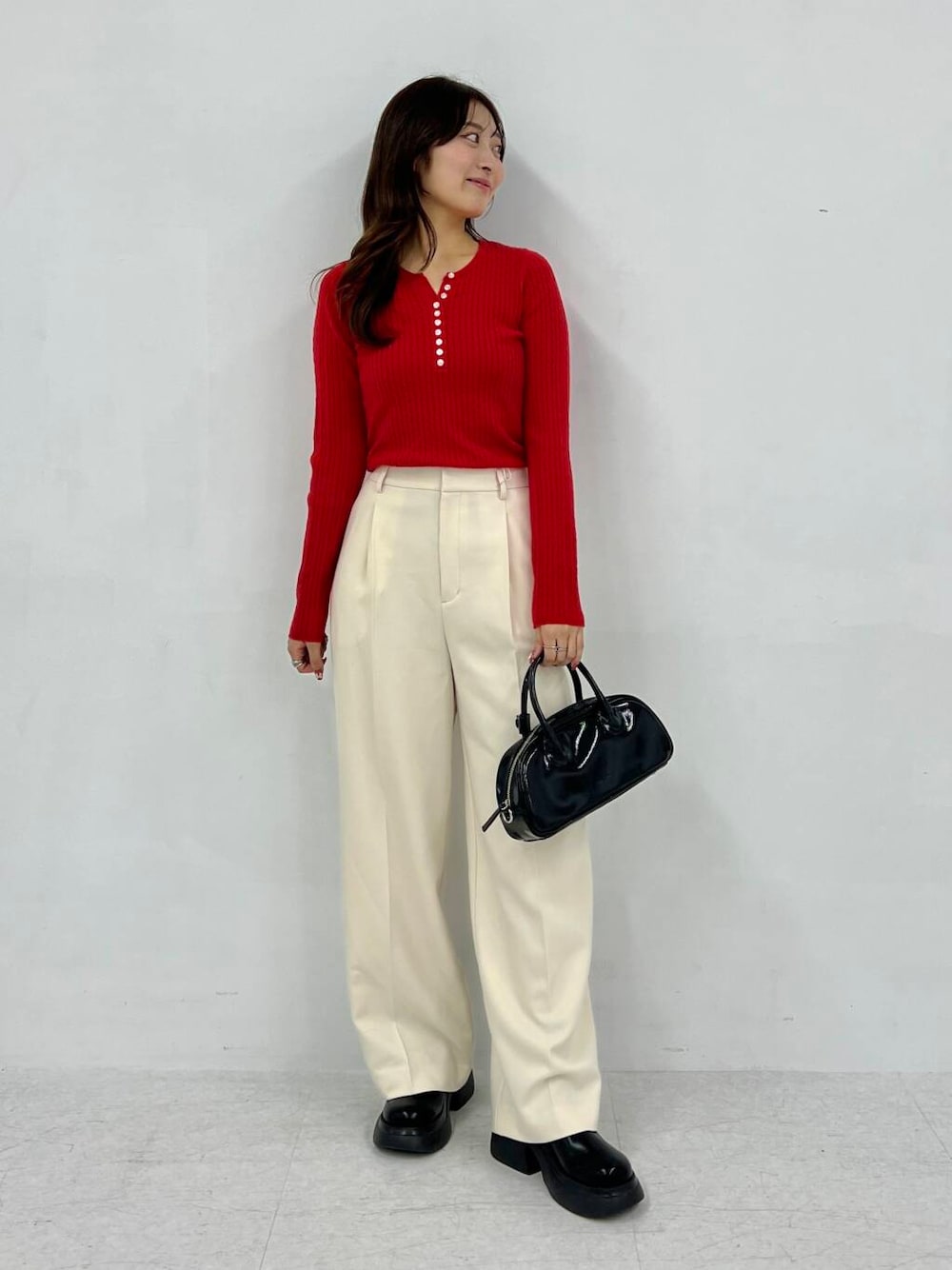 首元がスッキリしていて、程よいフィット感のあるコンパクトニットです!