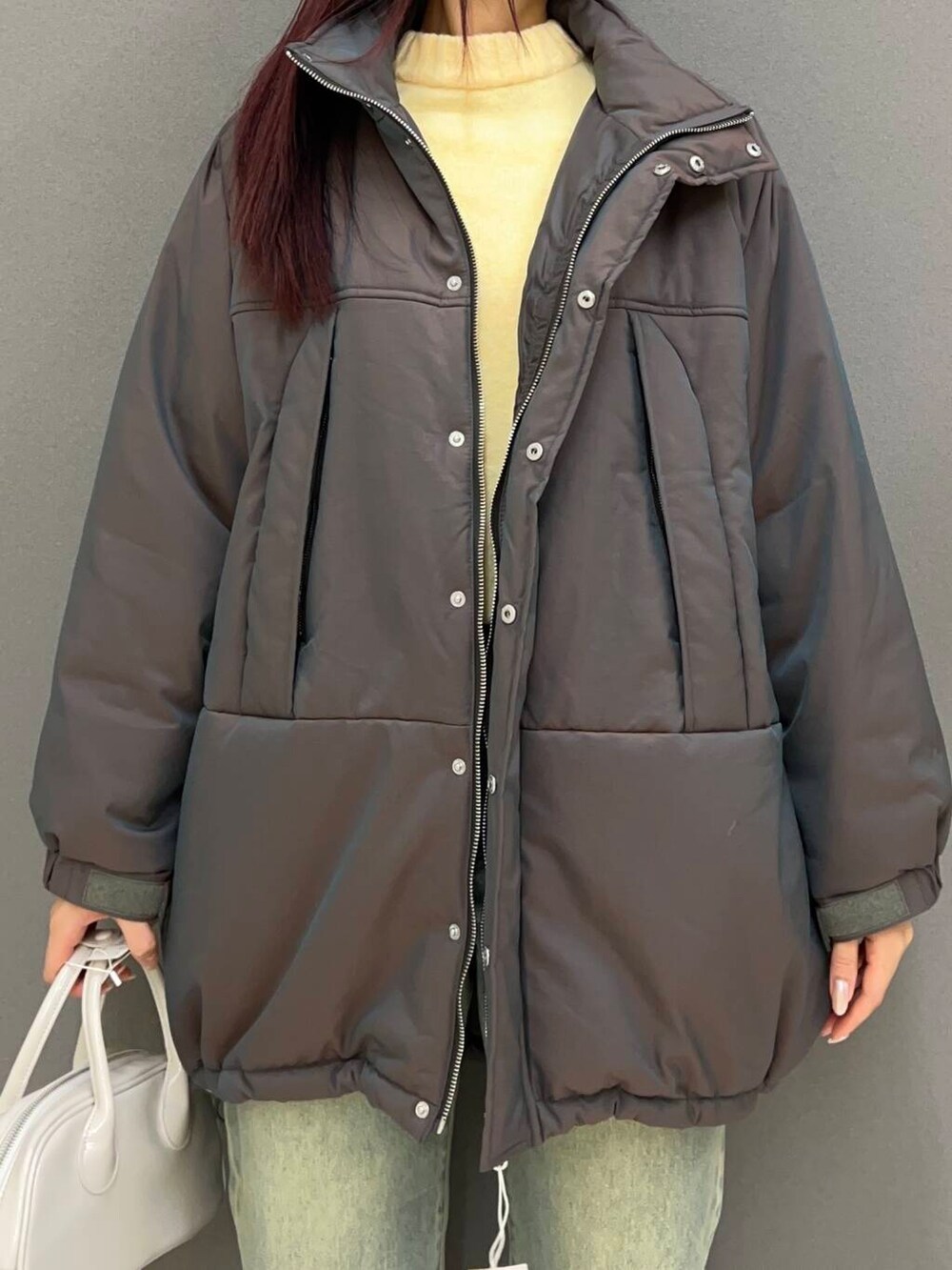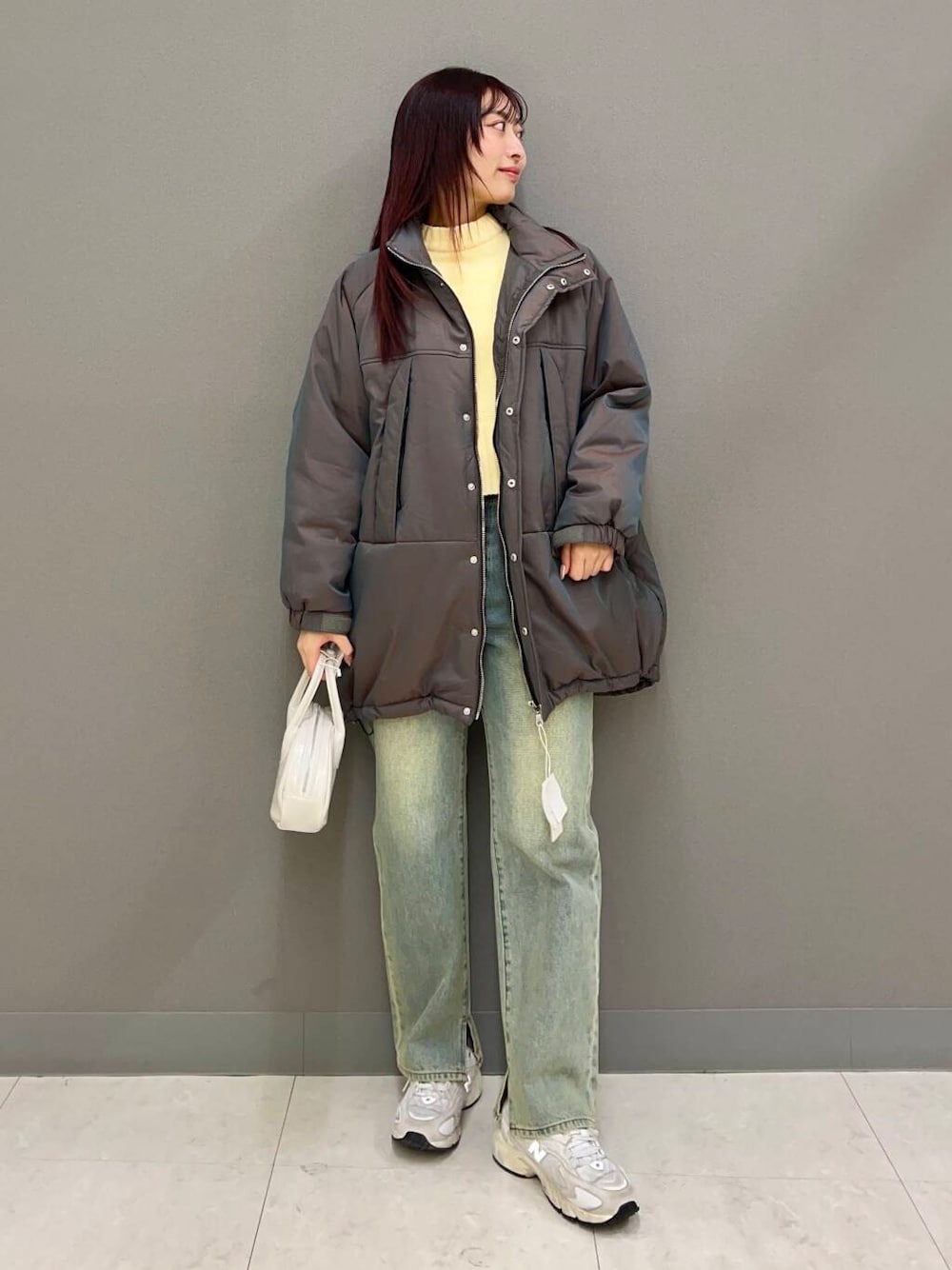 イエローのニットをメインに、モンスターコート×デニムで動きやすいコーデにしました!