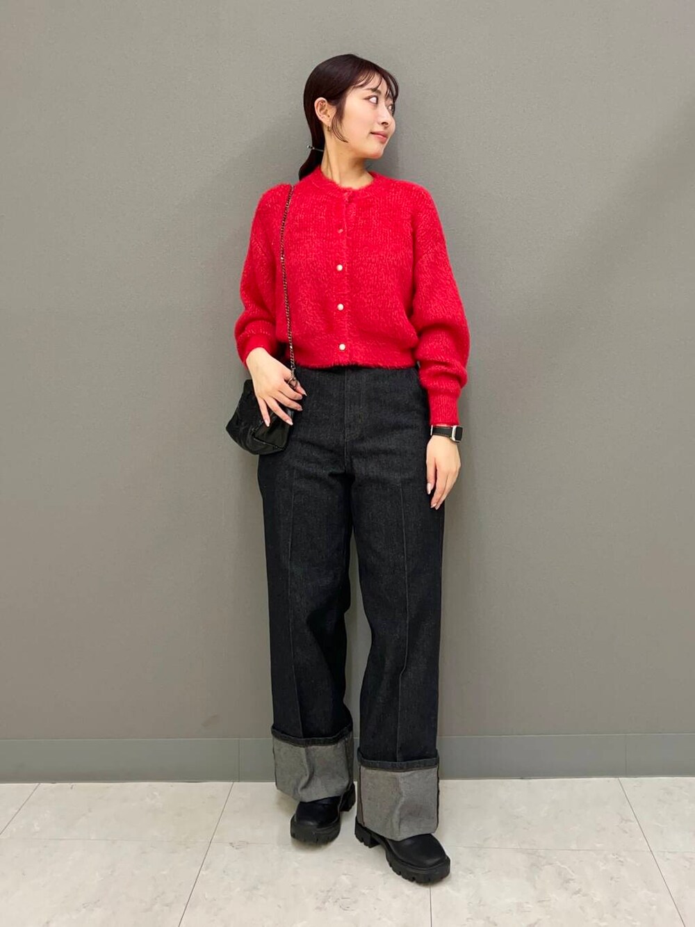 トップスはレッドのラメカーデにしてホリデー感を出してみました◎