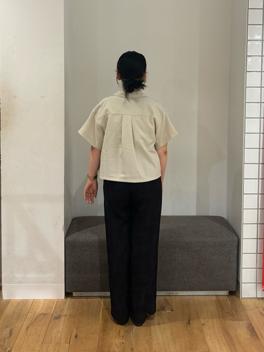 ボトムスもツヤ感がある物を着用し大人カジュアルな組み合わせに👍🏻