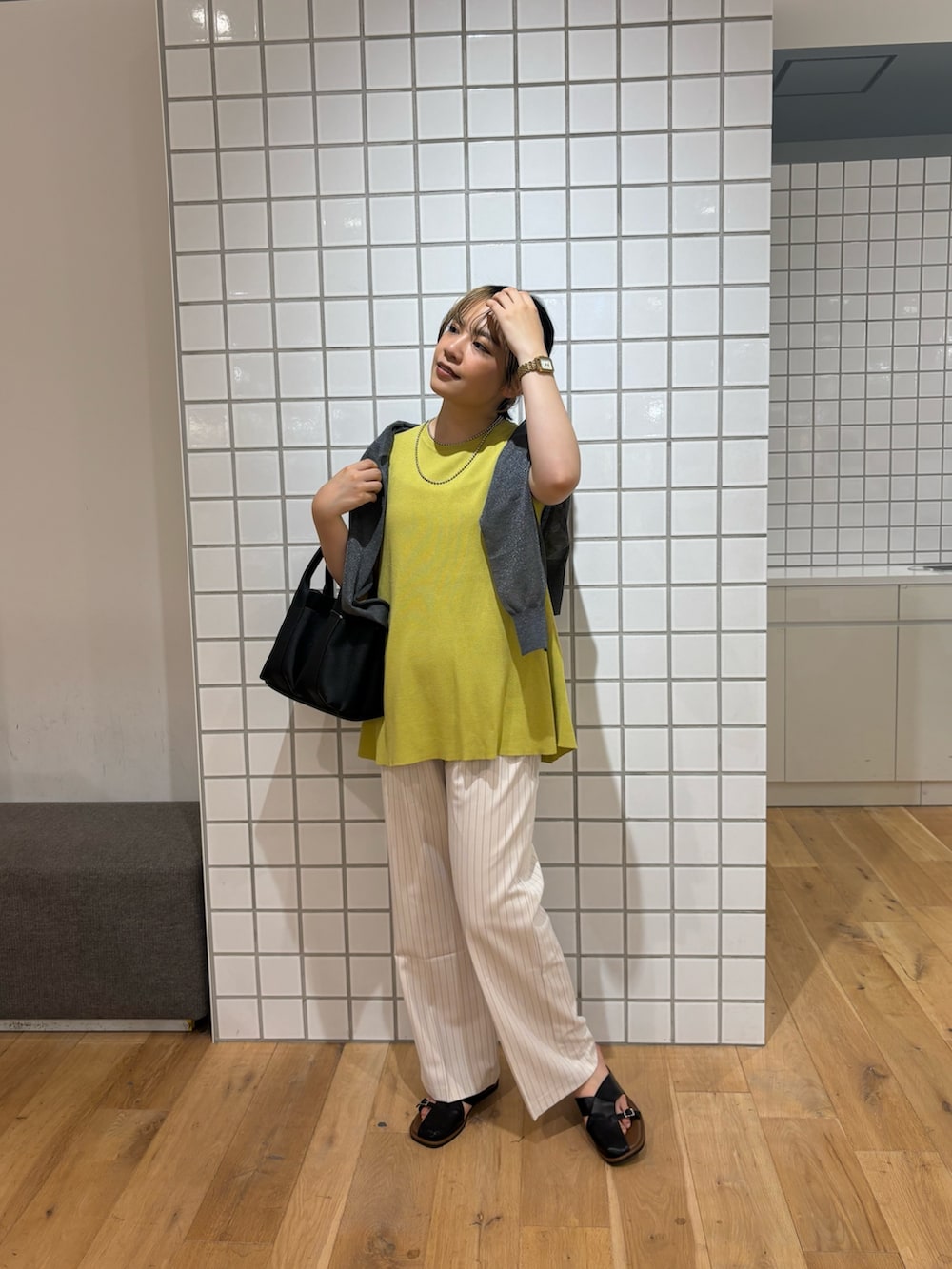 それでもちょっと気になる…という方はカーディガンを肩周りに掛けてあげるとより良いです◎