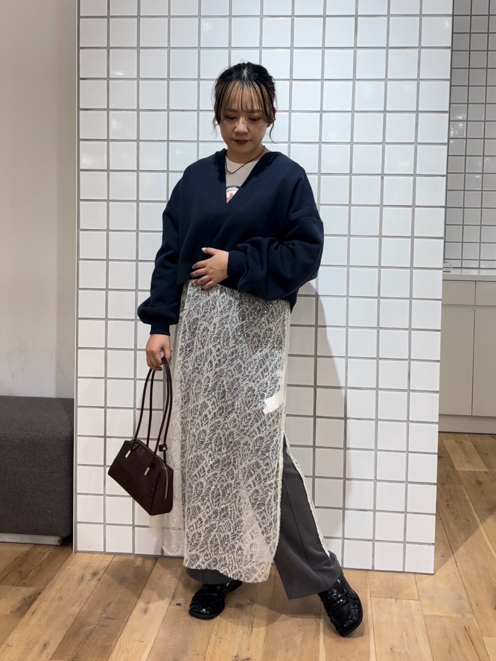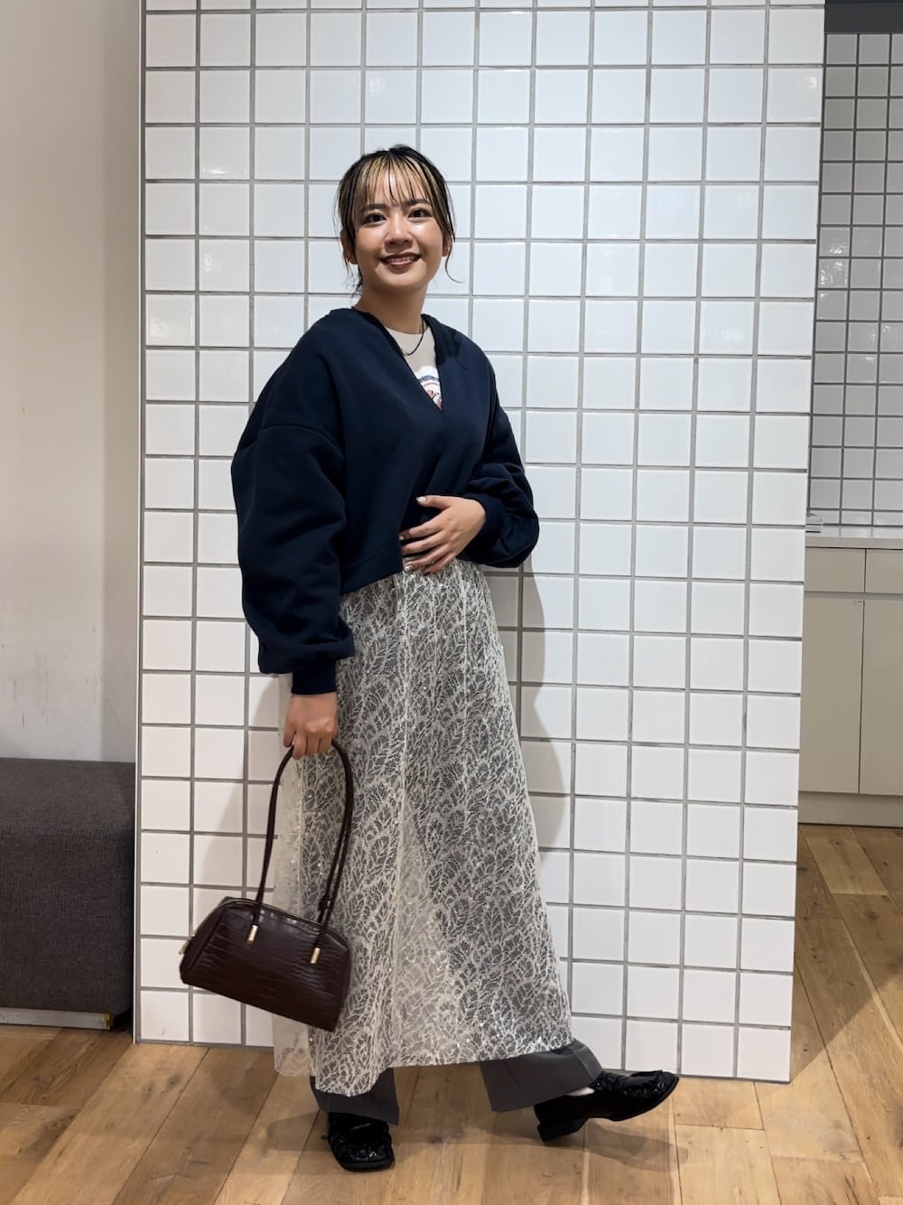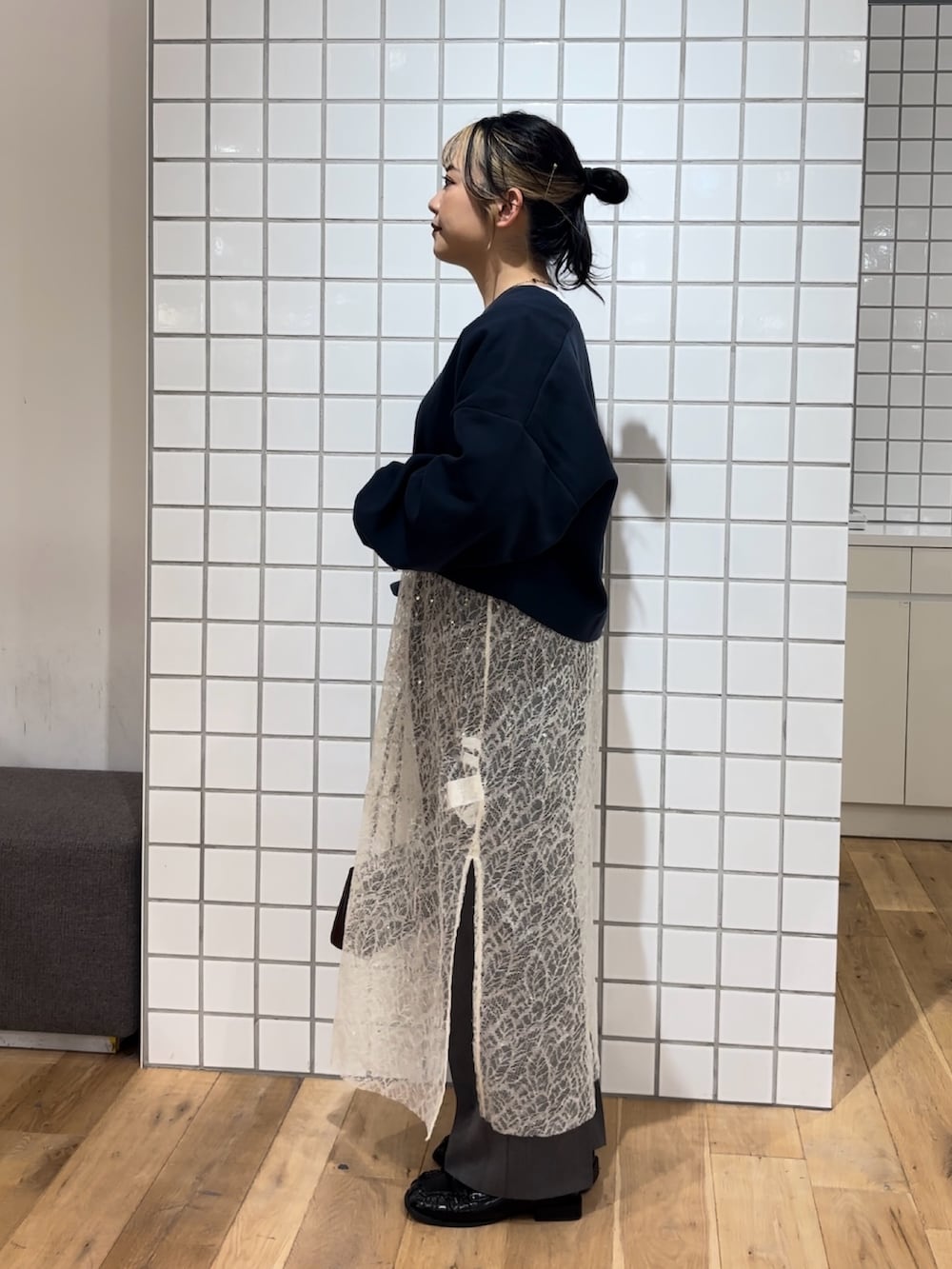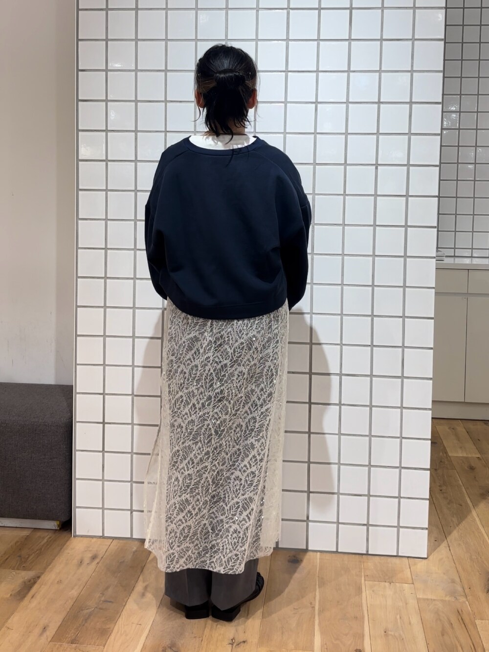 カジュアルでシンプルになりやすいトレーナーの下にレース素材のキャミワンピースを組み合わせて今っぽさのあるレイヤードスタイルにしてみました!
