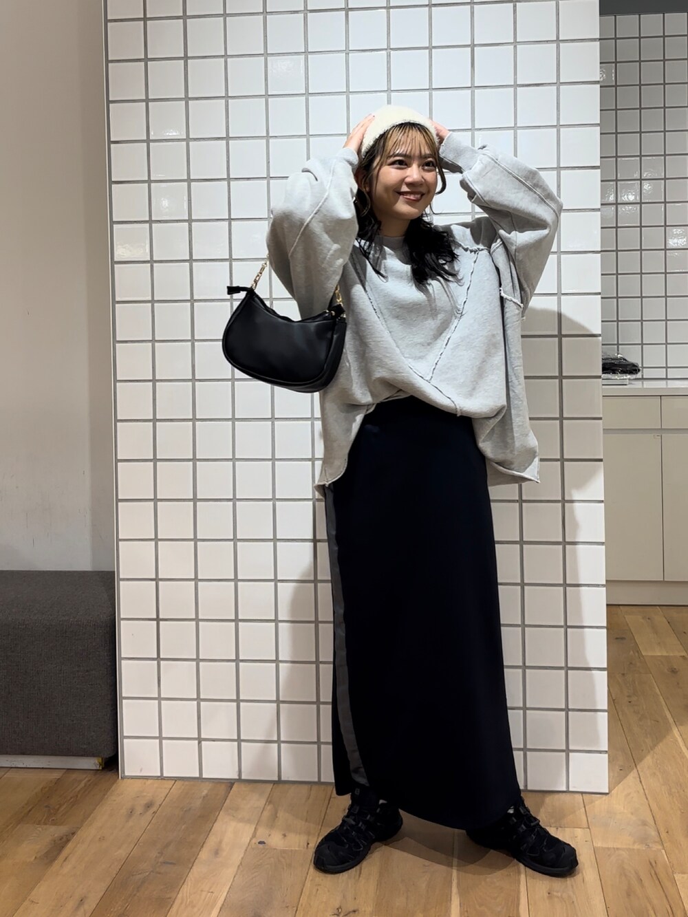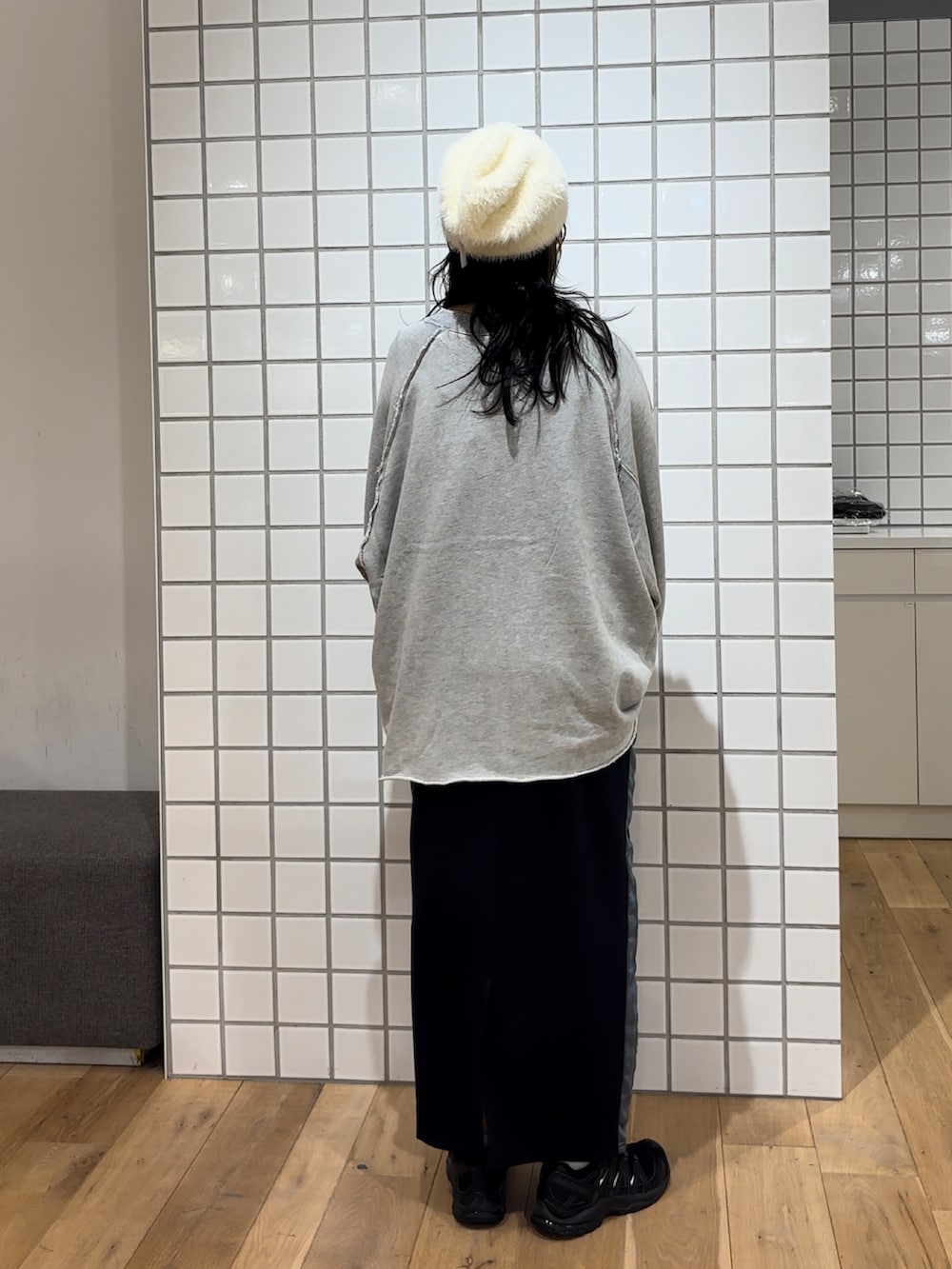 スウェットはダメージデザインが切り替えとして沢山入っていてサイズ感がゆるっとしてるので1枚でおしゃれ見えします◎