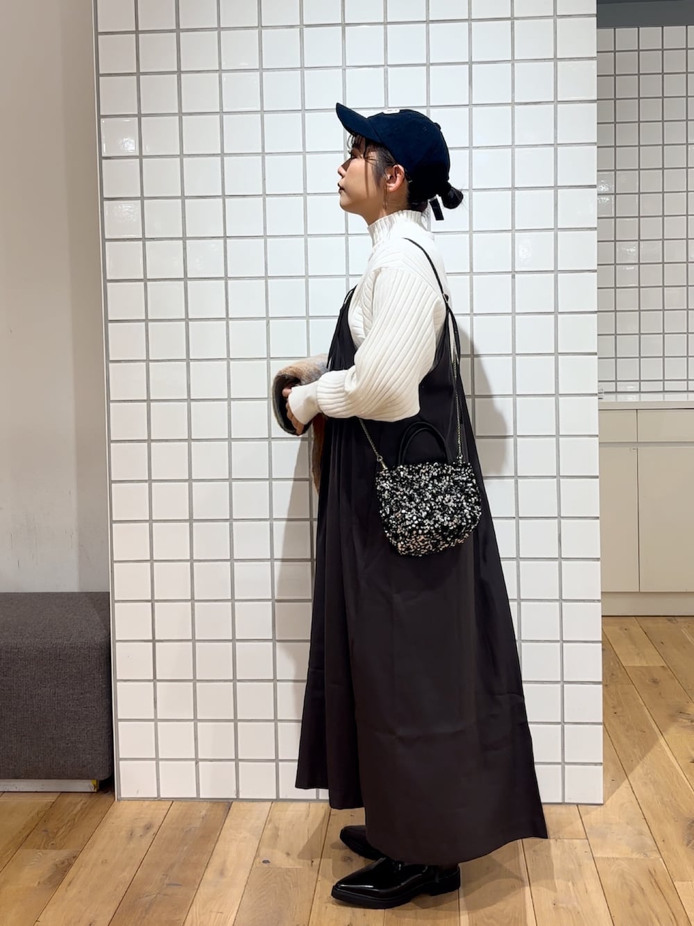 マトンスリーブのタートルネックは程よくゆとり感があり、タートル部分も高すぎないので首が短い私でもスッキリ着用する事ができました◎