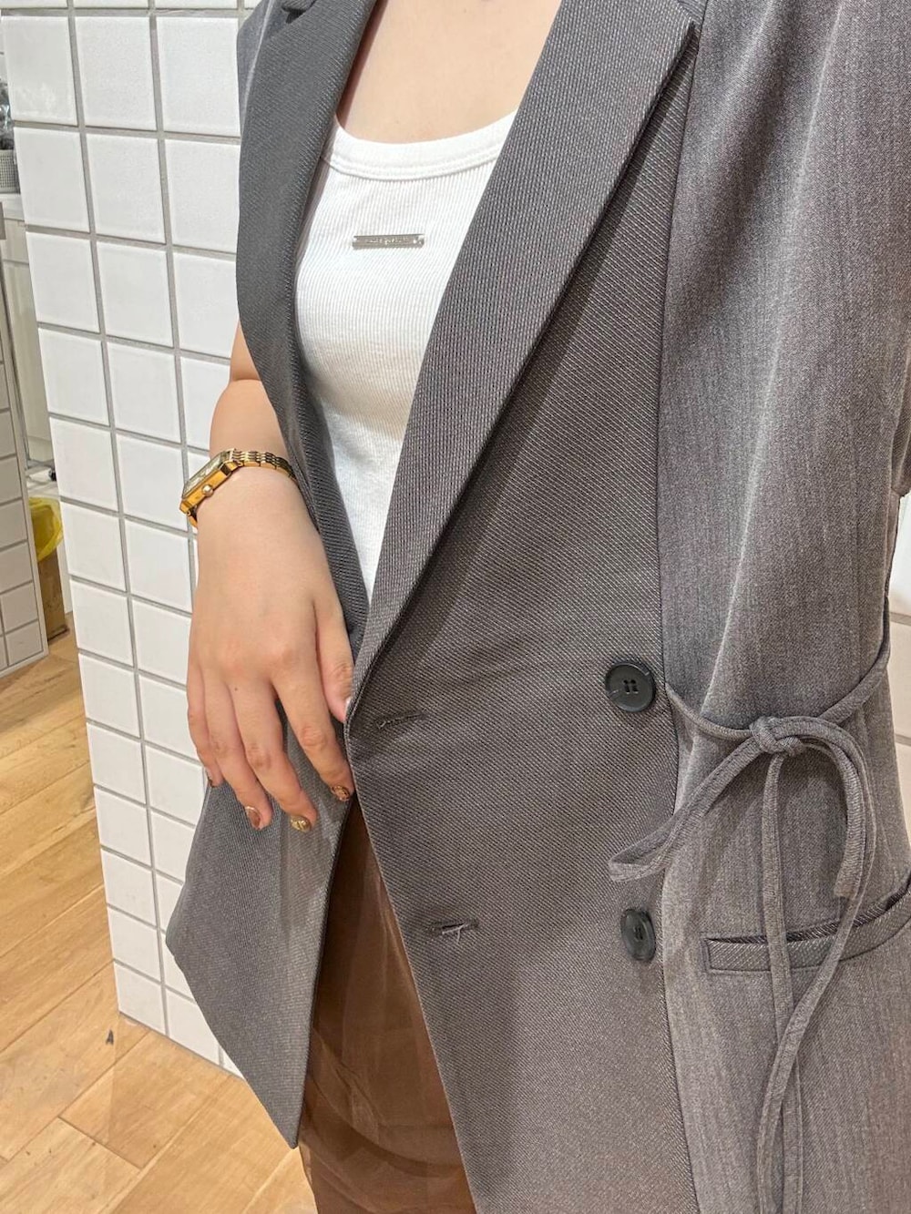 ベストはサイドにリボンのデザインが付いており、パッチワークの様なデザインで他とは違う印象になって1枚でお洒落な印象に👍🏻