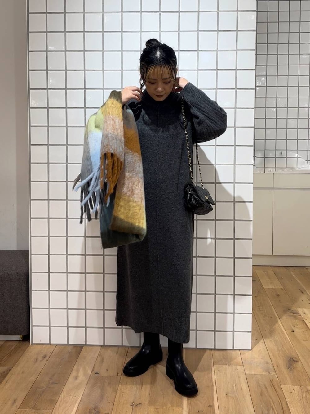 全体をシンプルなカラーにまとめて、マフラーはあえてカラーが混ざっているものを合わせました🧣