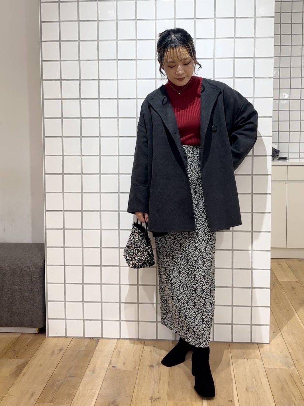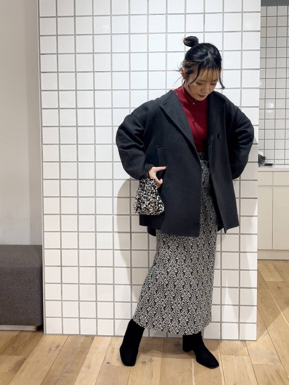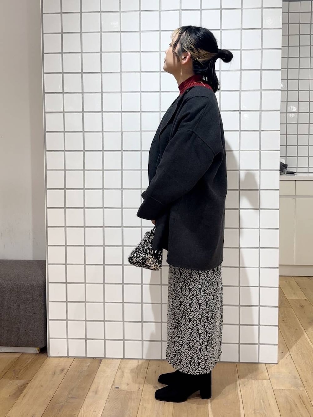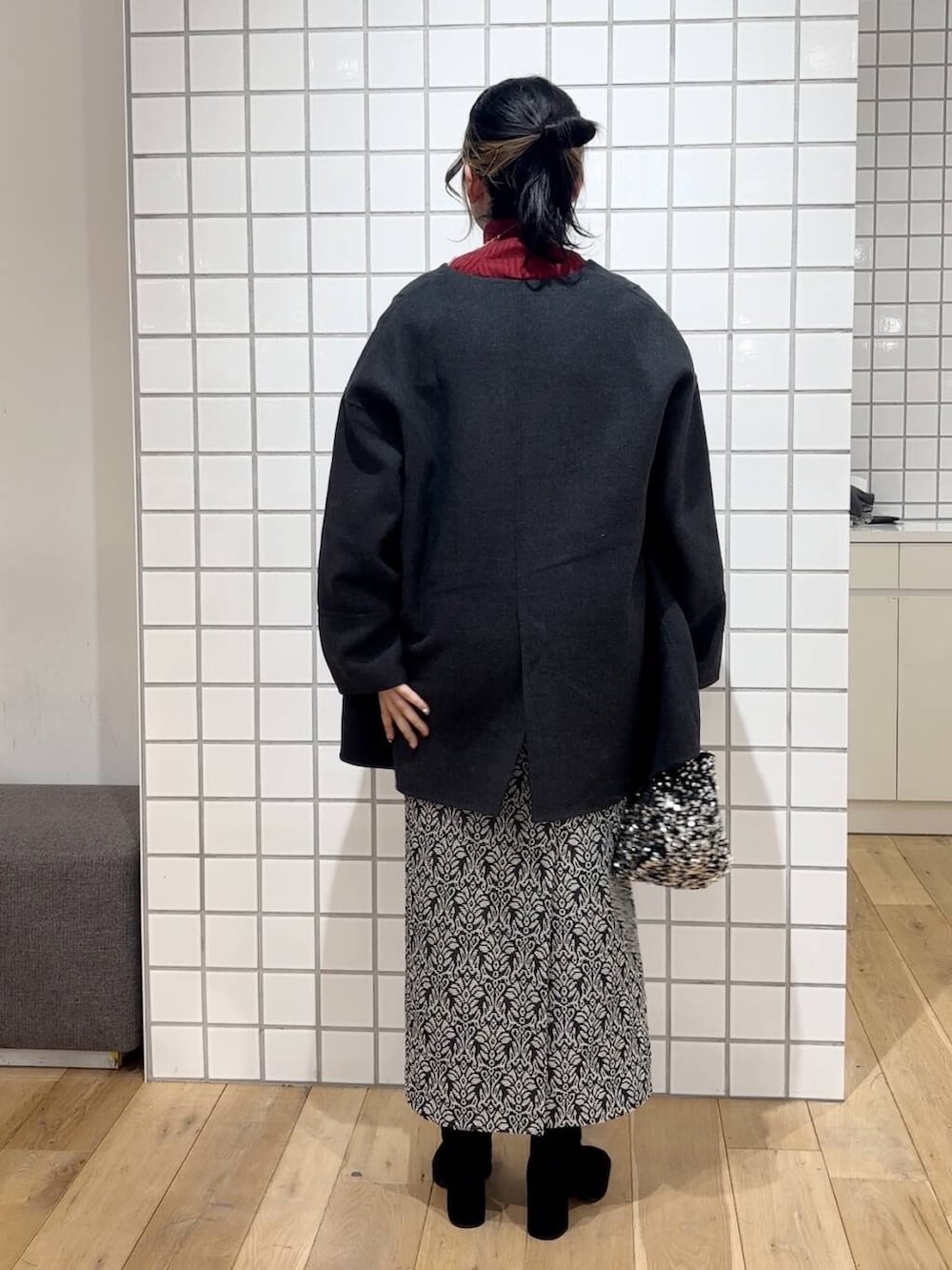 ミドル丈のコートは、程よく身幅もありサラッと羽織ることのできるので、気温感が難しい今の季節、特にオススメです◎