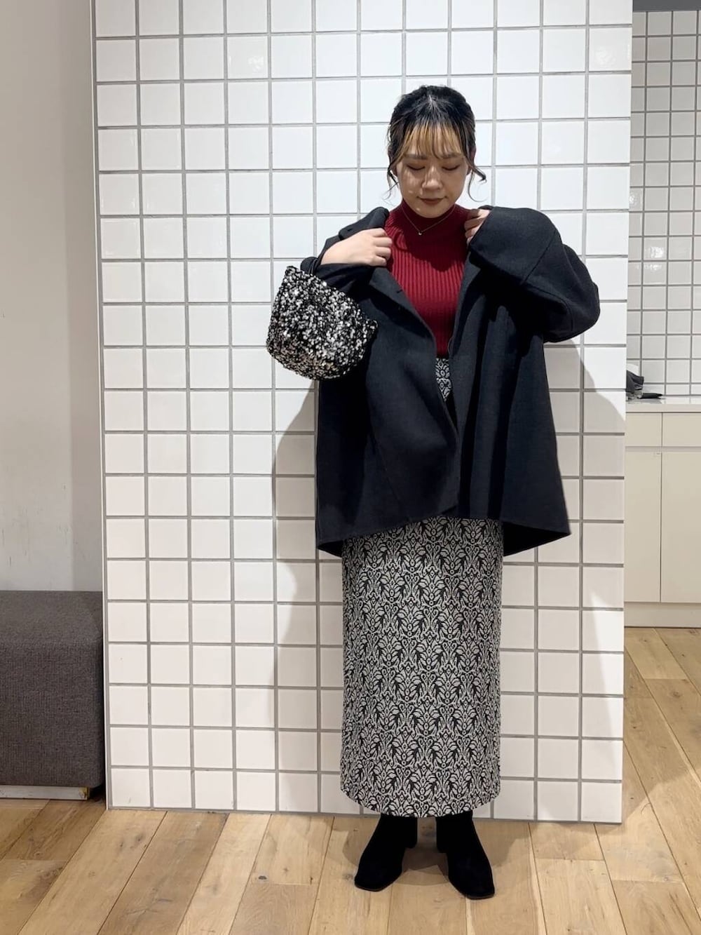 ジャガード柄のスカートは、シンプルな組み合わせの時に映えるデザインで、シルエットも綺麗な縦ラインがでる1枚です👍🏻