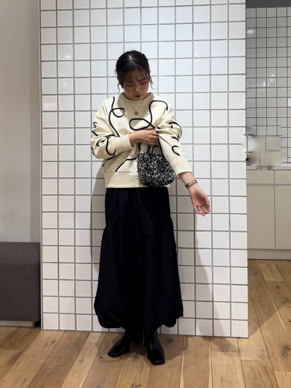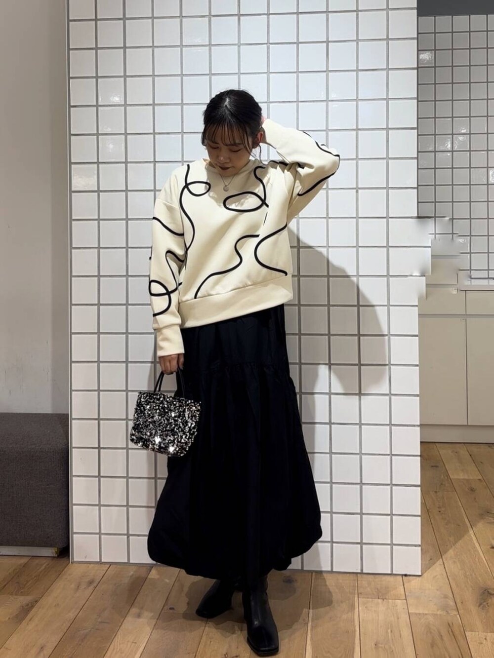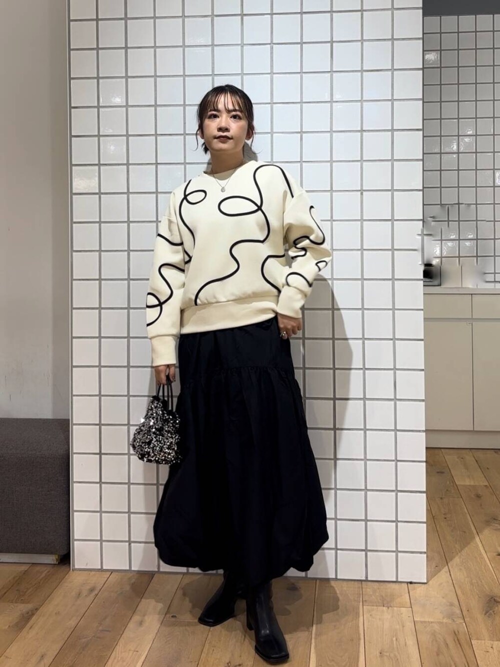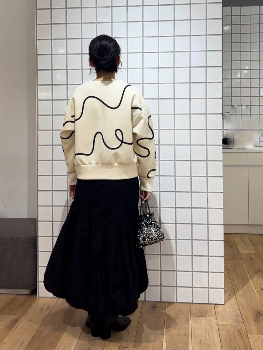 今っぽさのあるコード刺繍スウェットは、デザイン性があるので華やかに着れます!