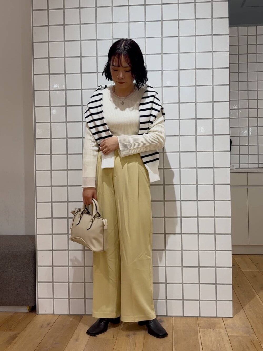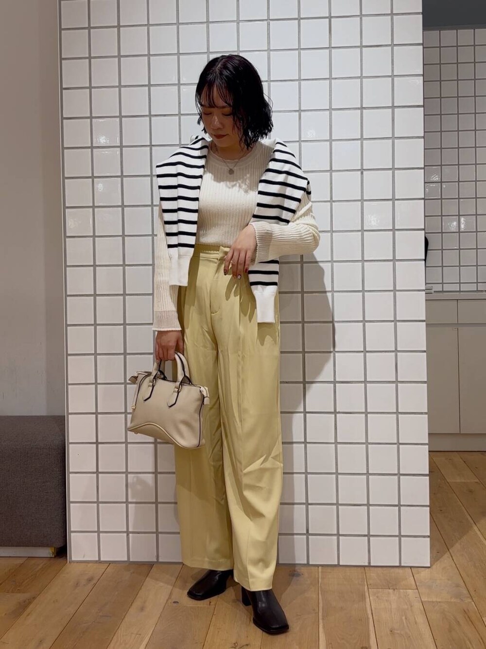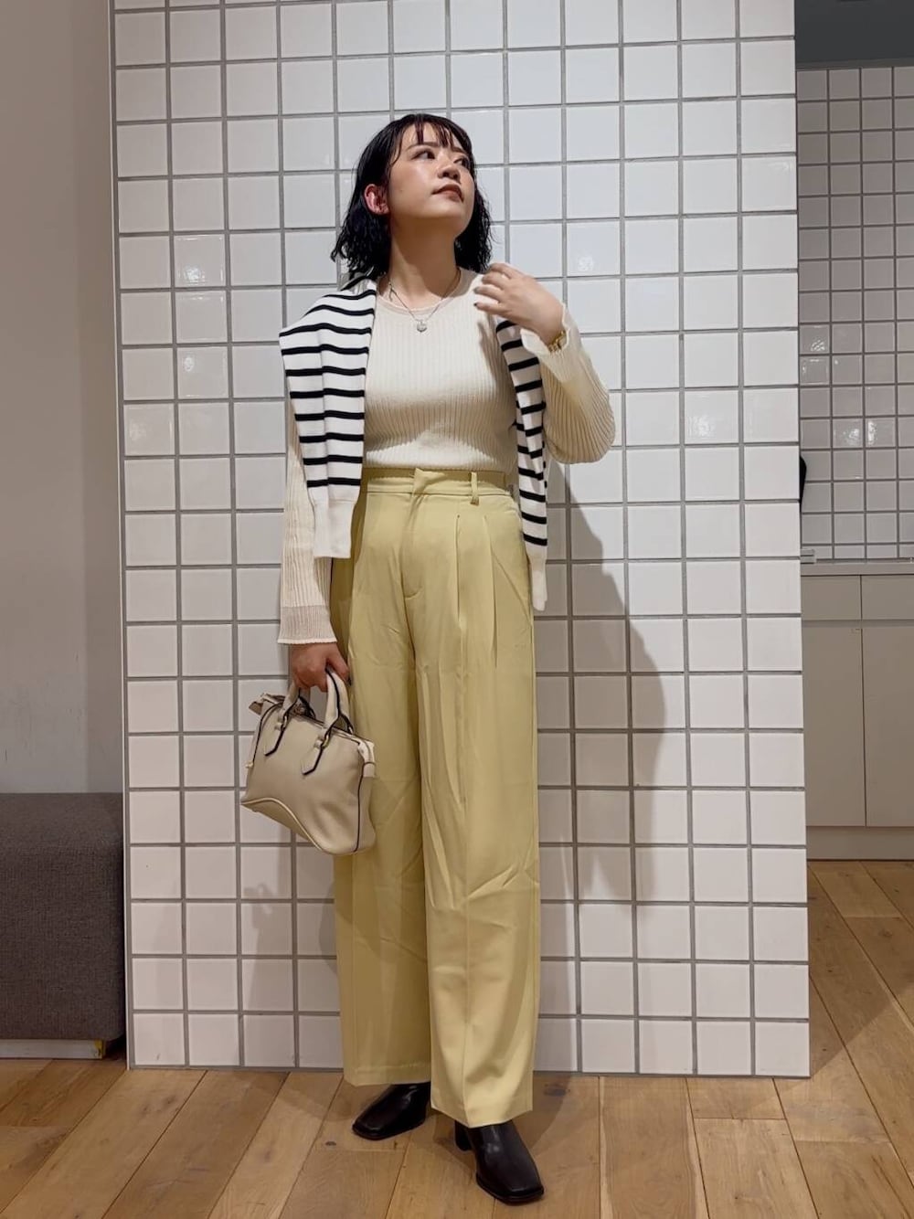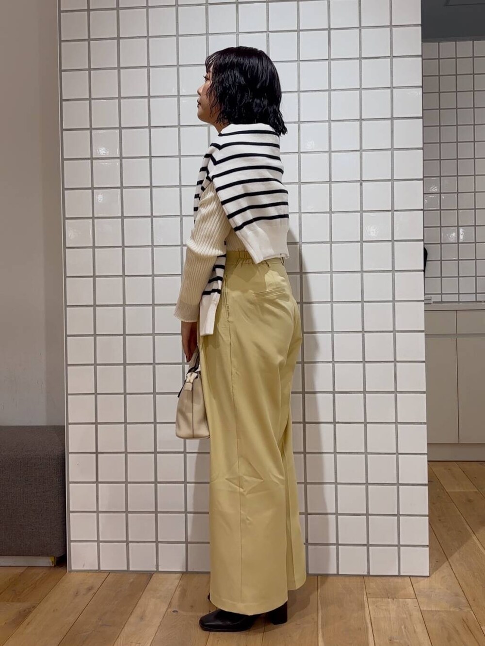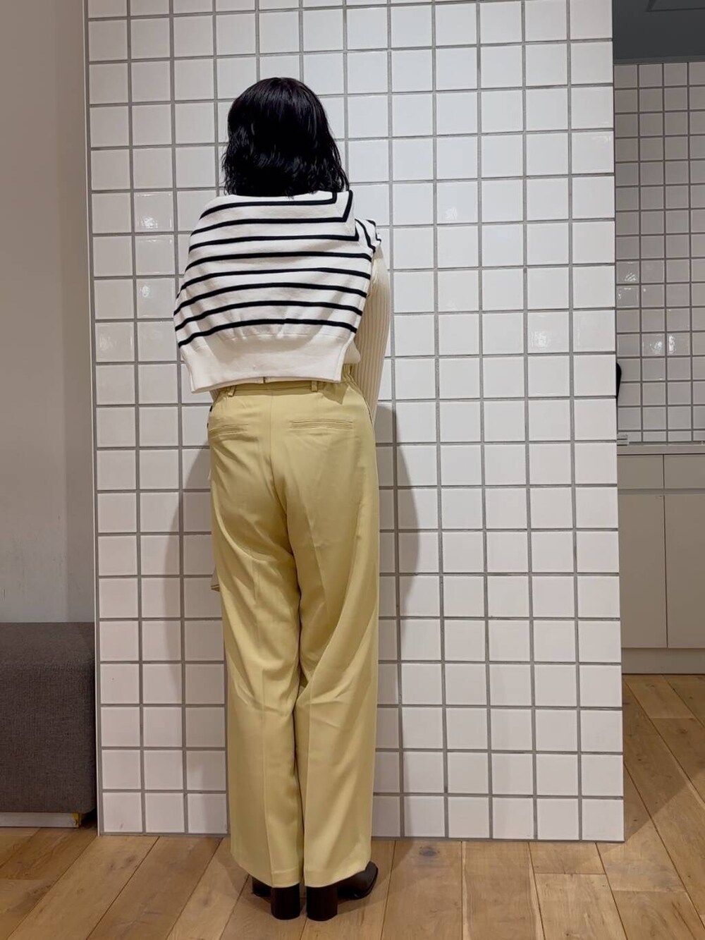 カラーパンツはサラッとした手触りで幅感もありタックも入ってるので綺麗な足元に見えます◎