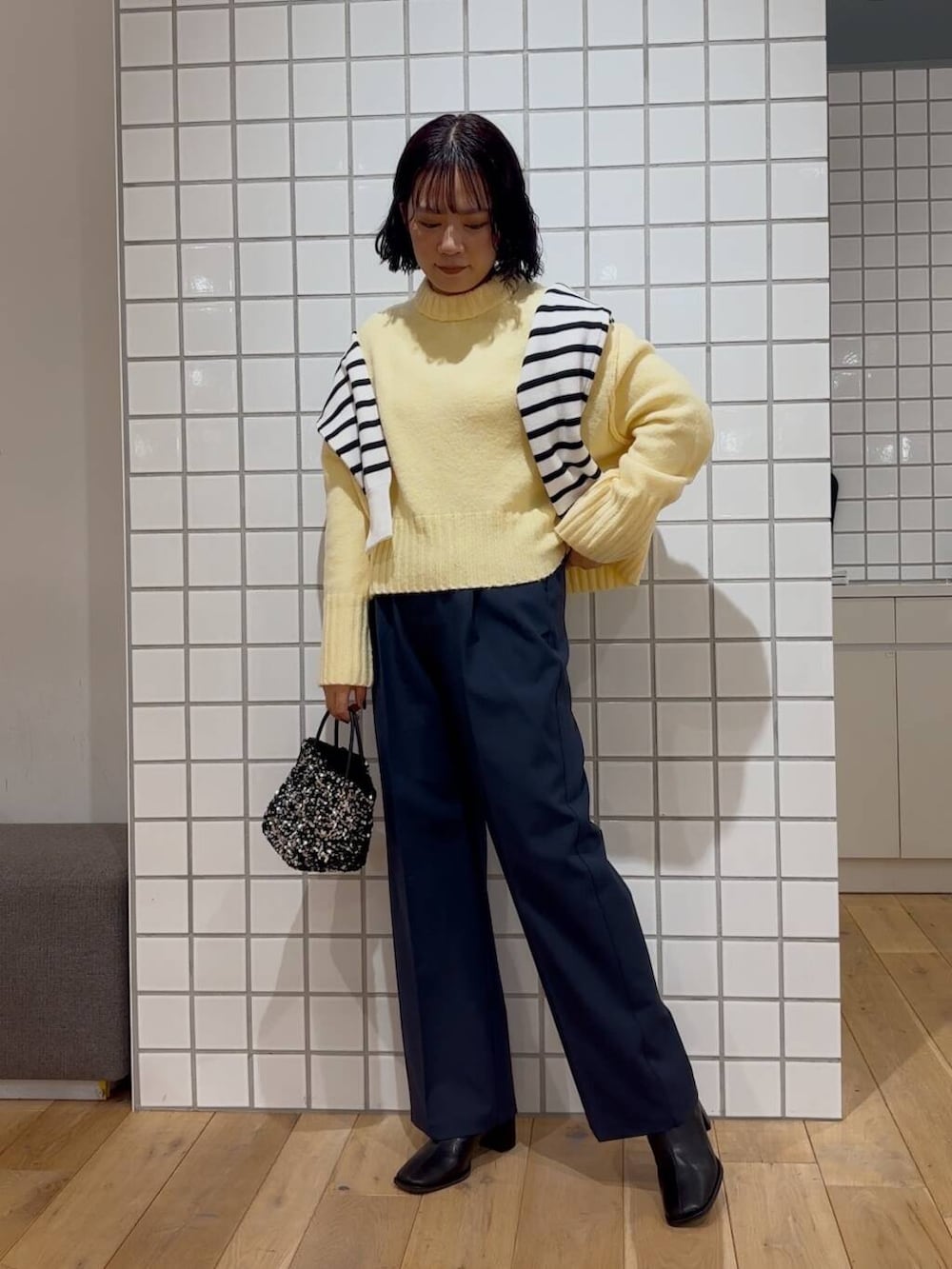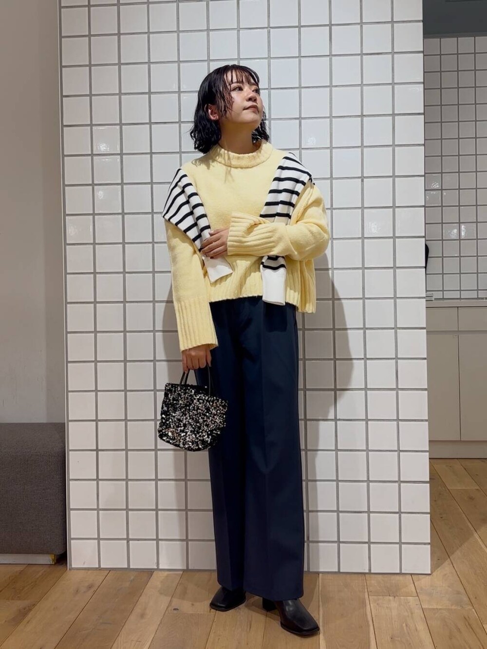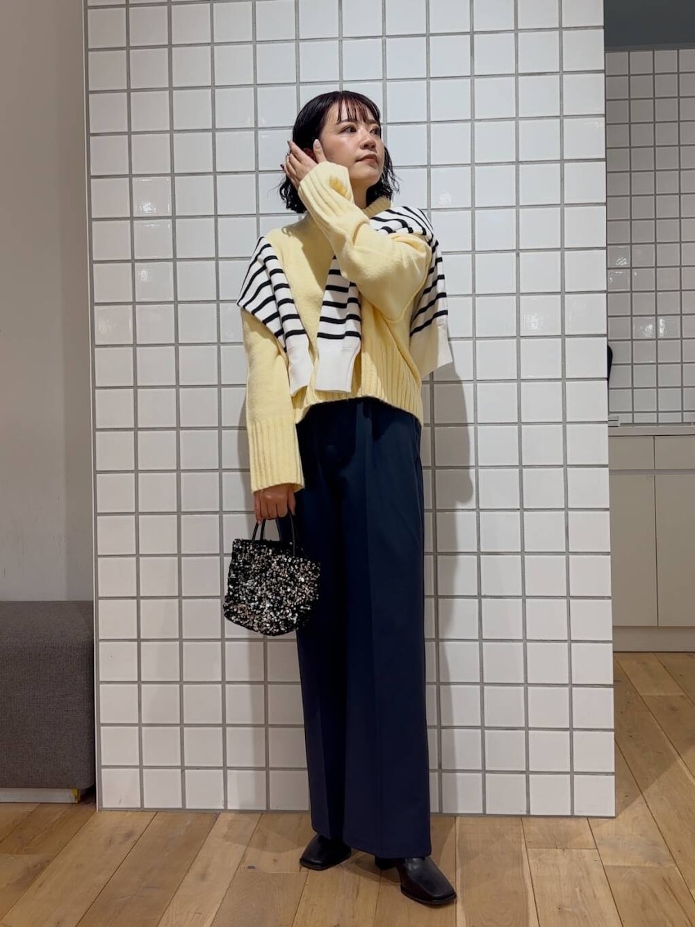 着用してるニットとカーディガンはお家でお手入れが可能で単体でも万能に使えるシンプルなデザインです!◎