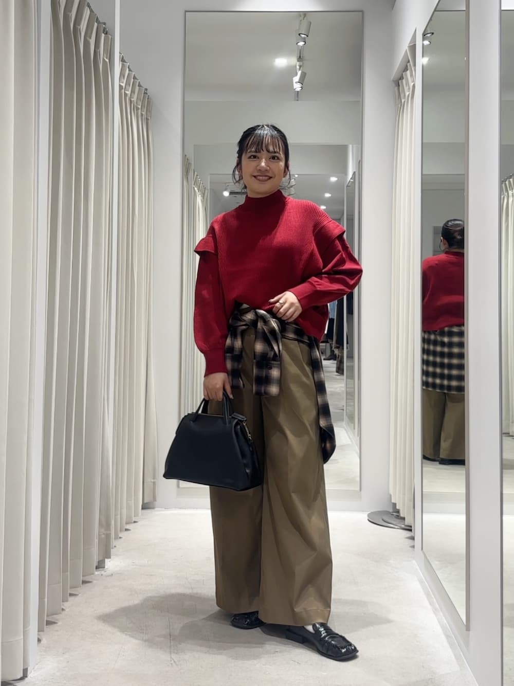 毎年人気のショルダータックニットの赤色を着用してみました!