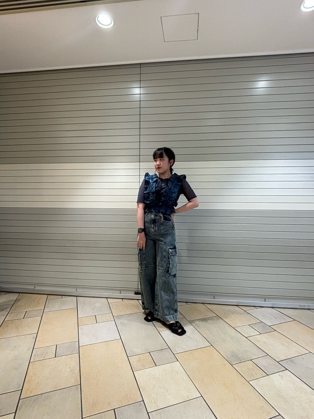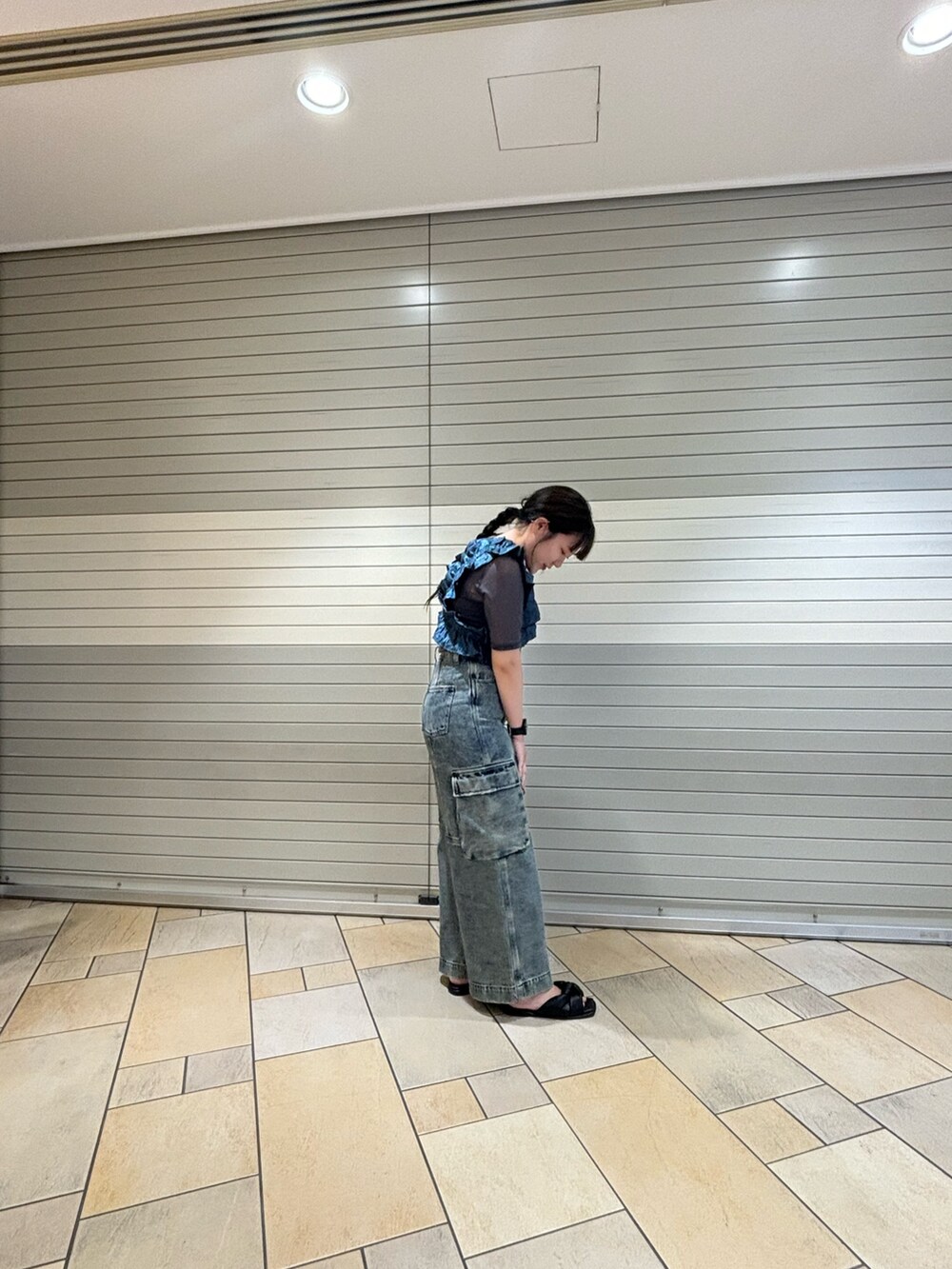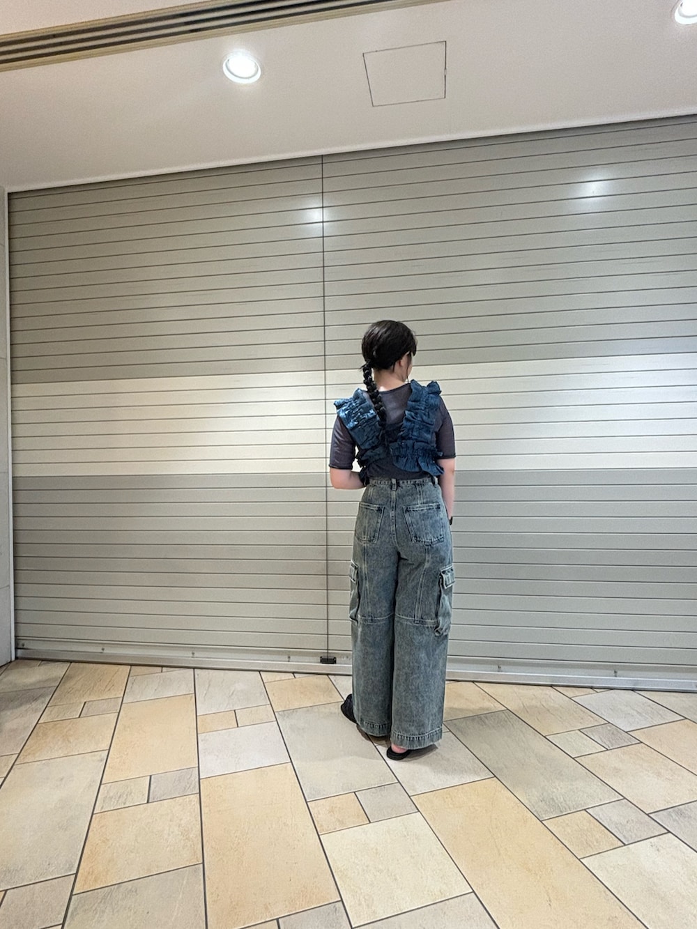 ラメが入ったフリルビスチェにヴィンテージデニムで可愛さ