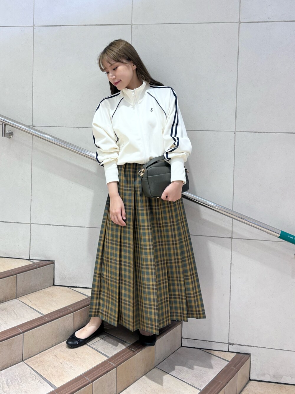 トラックジャケットとチェックスカートで大人カジュアルに◯