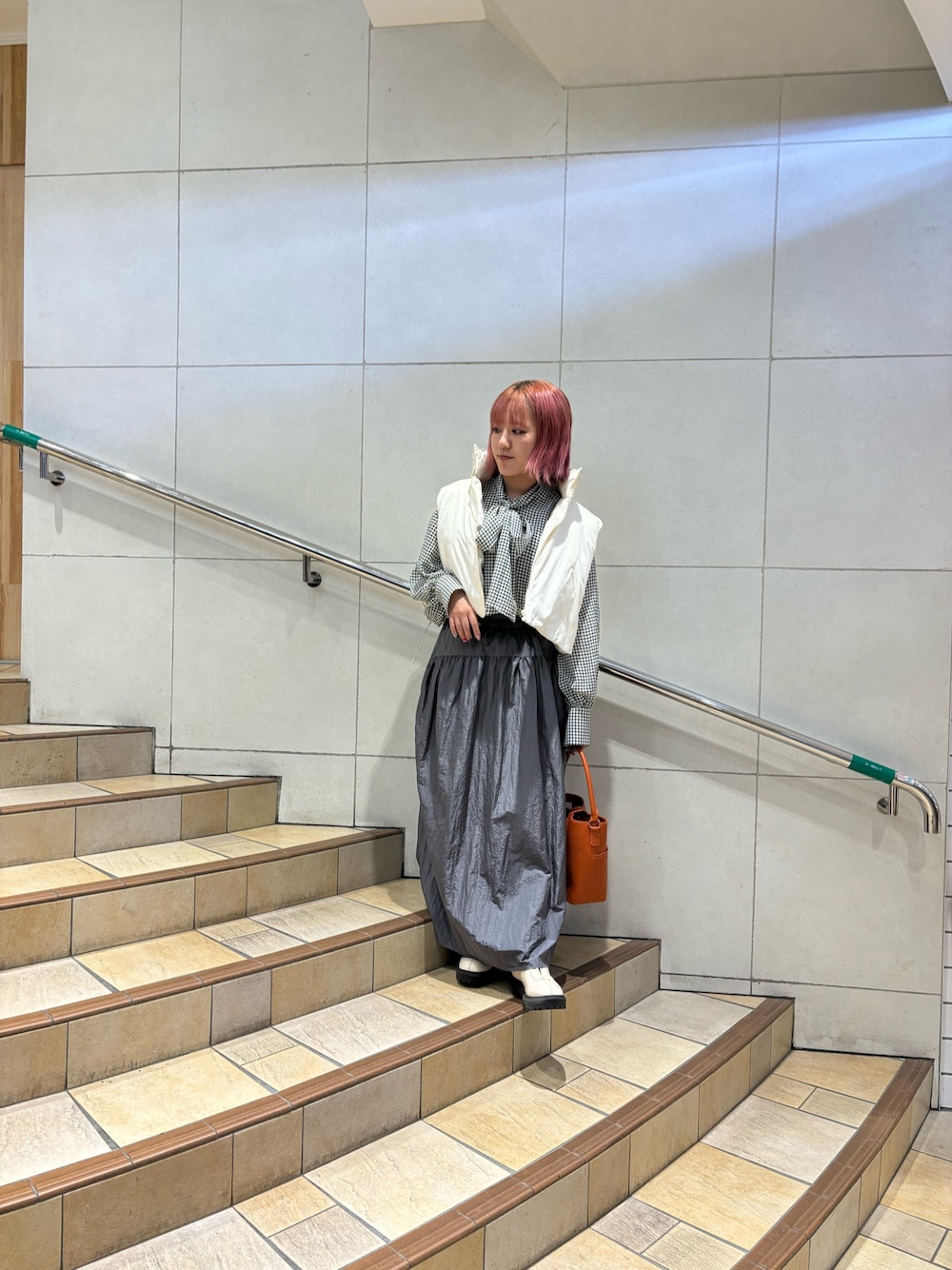雨の日や少し寒くなってきた時に1枚あると便利なパフベスト!