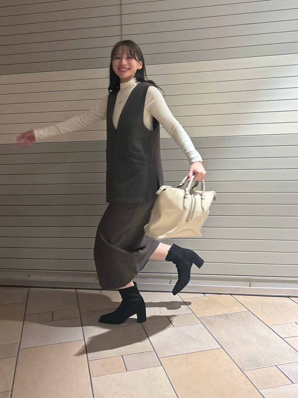 スカートはウエスト周りすっきりでジレが丈長めなのでメリハリが出て綺麗なシルエットに◯