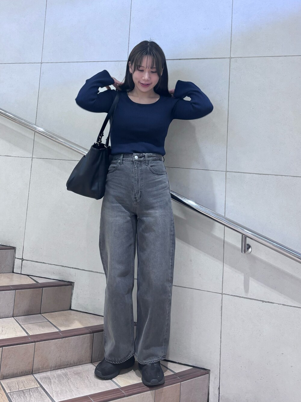 コンパクトめなニットとワイドデニムで綺麗めカジュアルに◯