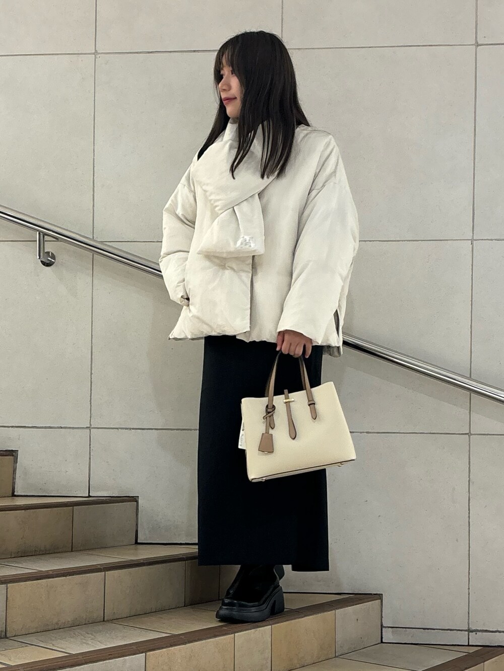 マフラー付きのダウンでゆるっと大人可愛く◯