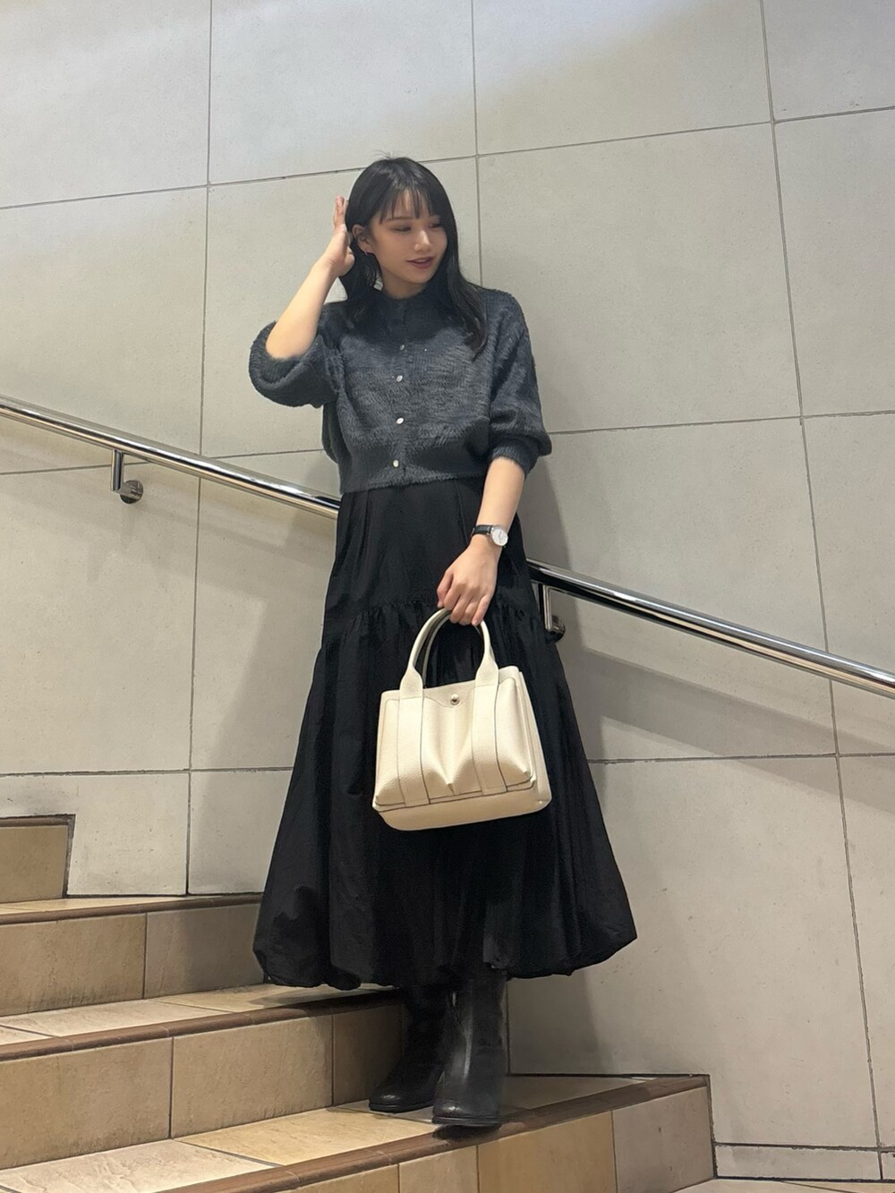 カーディガンはクロップド丈でボリュームあるスカートと相性抜群◯