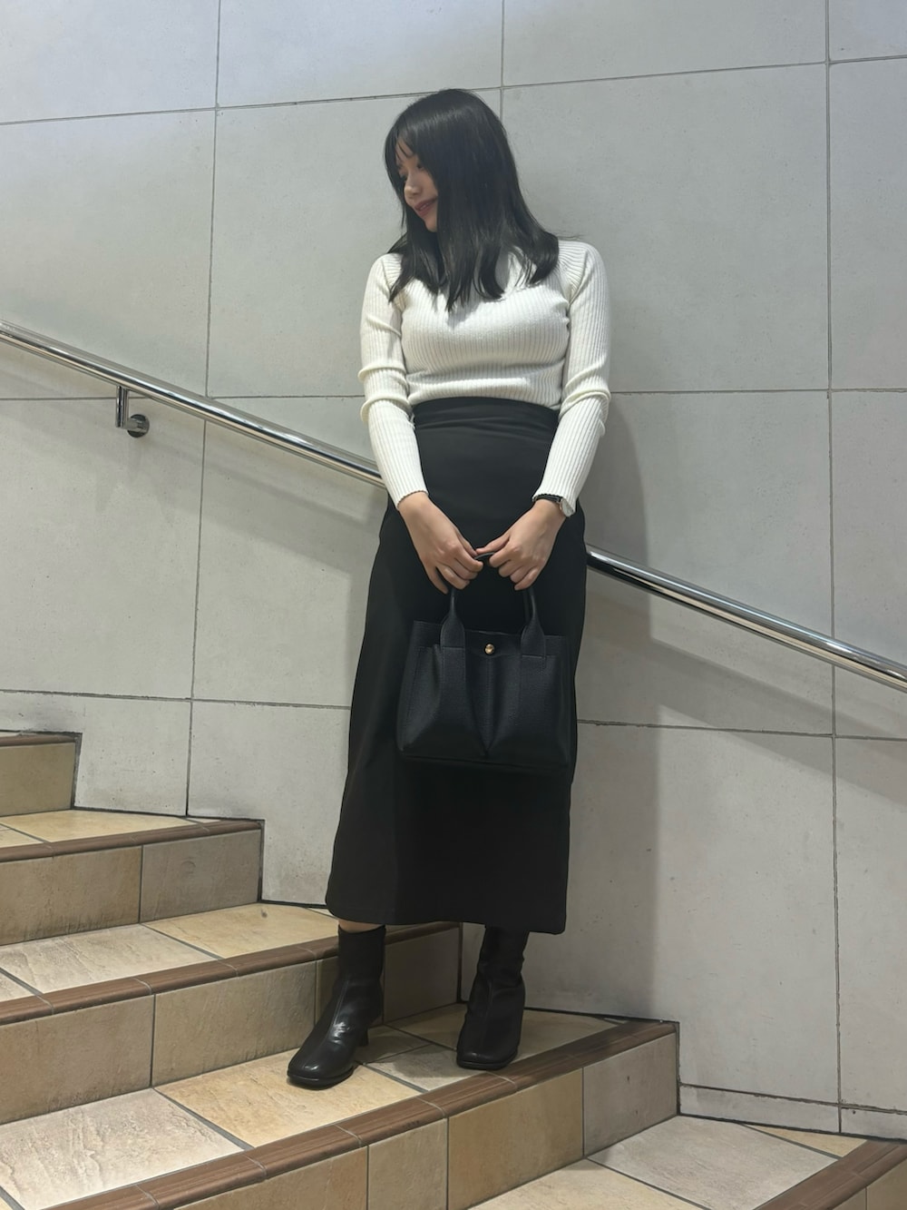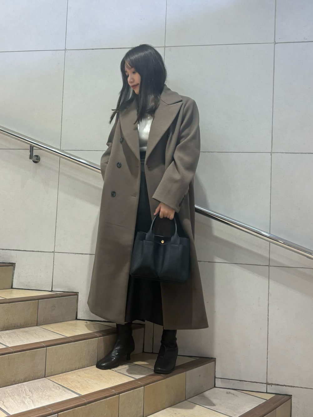 ブラウンのロングコートをメインに綺麗めカジュアルコーデ