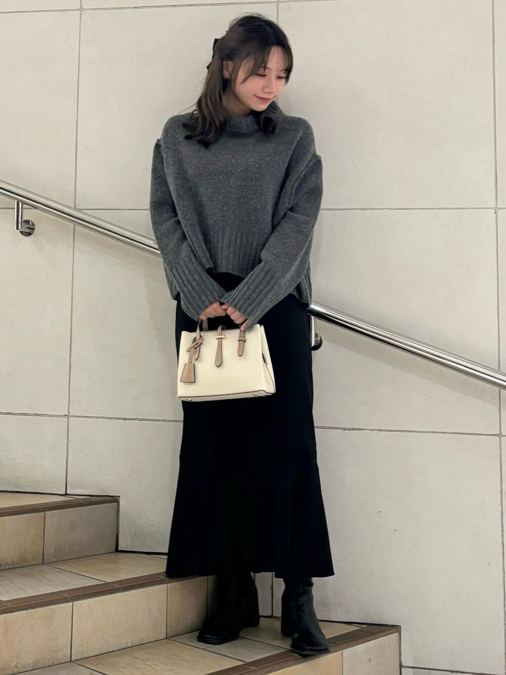 マーメイドスカートとゆるニットでフェミニンコーデ