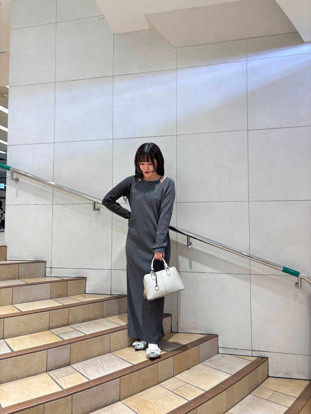 デコルテが見えるデザインで楽ちんワンピコーデ