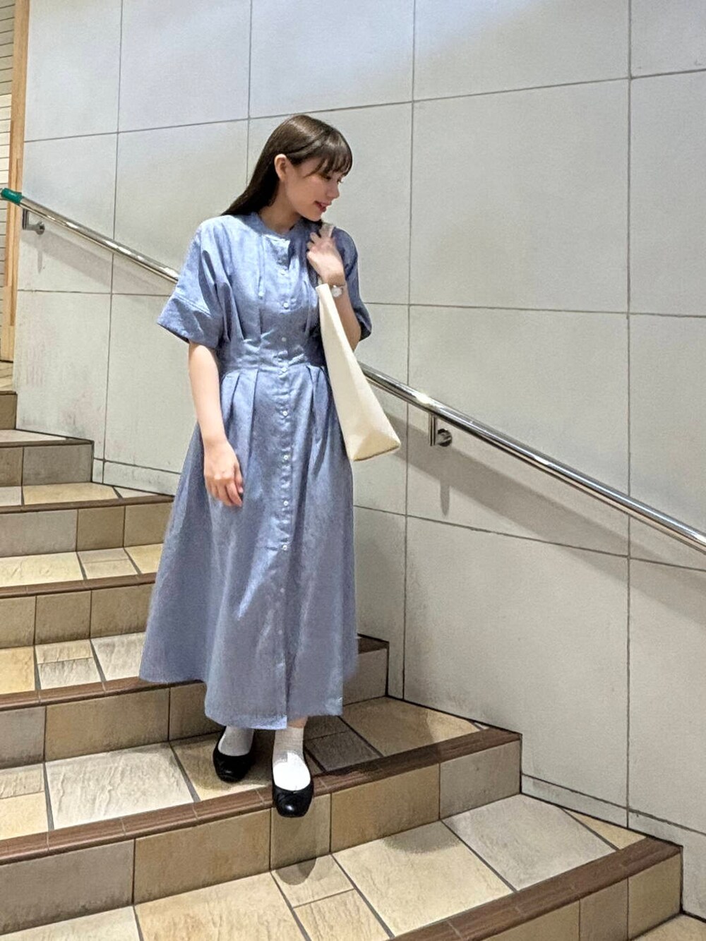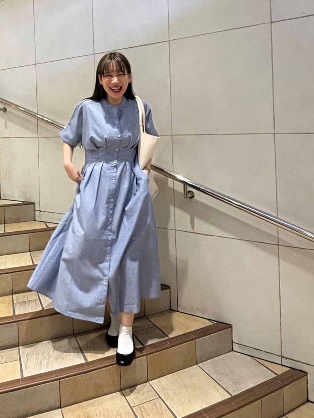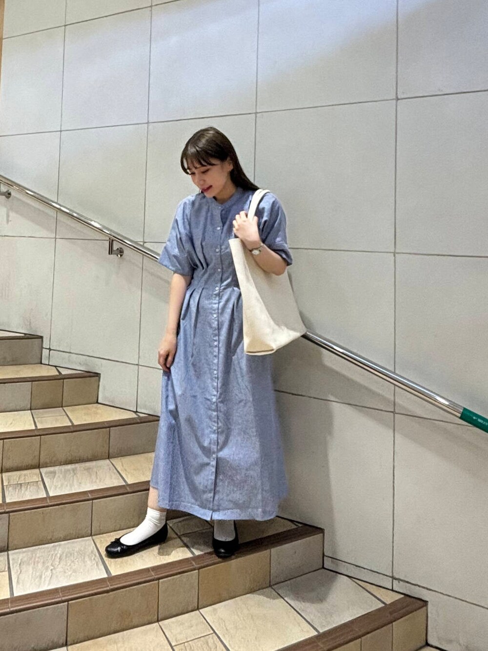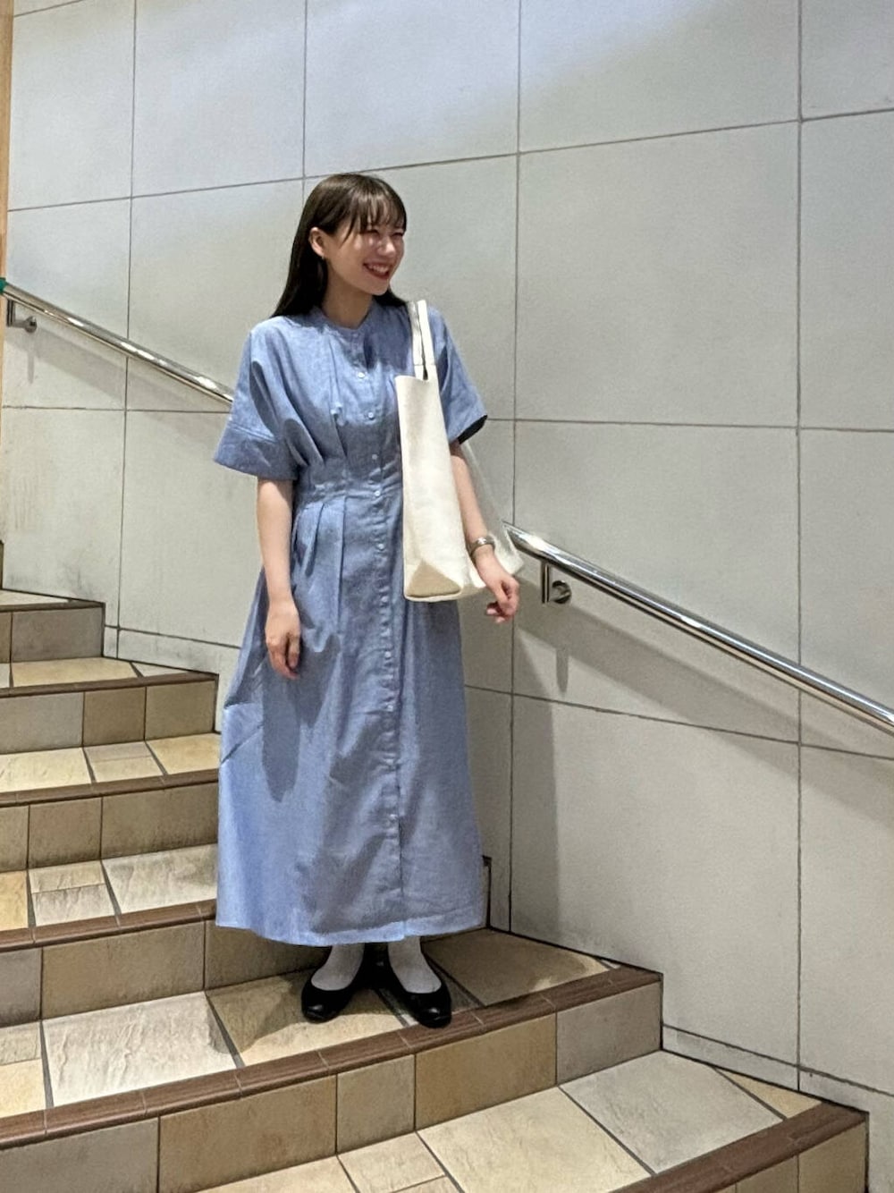 このシャツワンピースはウエストにタックが入ってて細見えします!