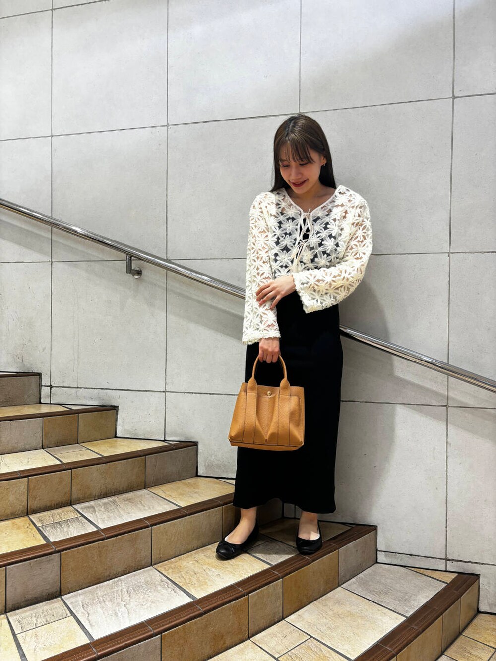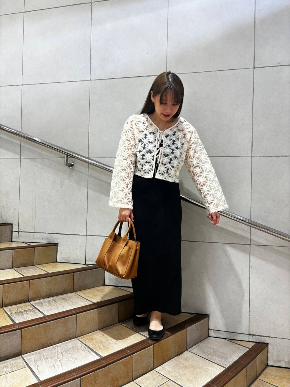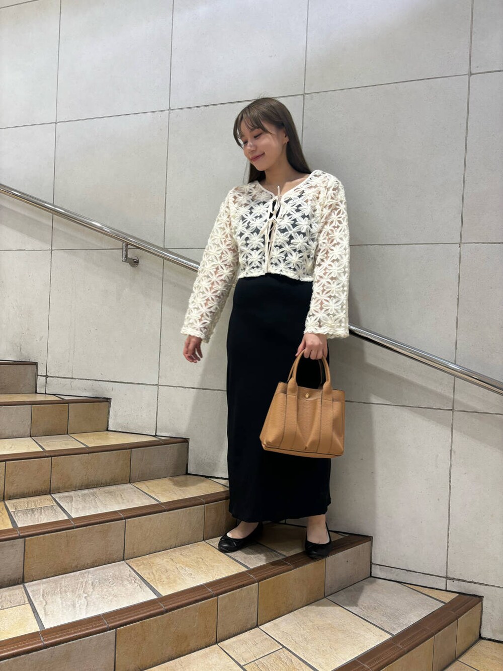 トップスは丈が短めでワンピースの上から羽織ると脚長効果も!