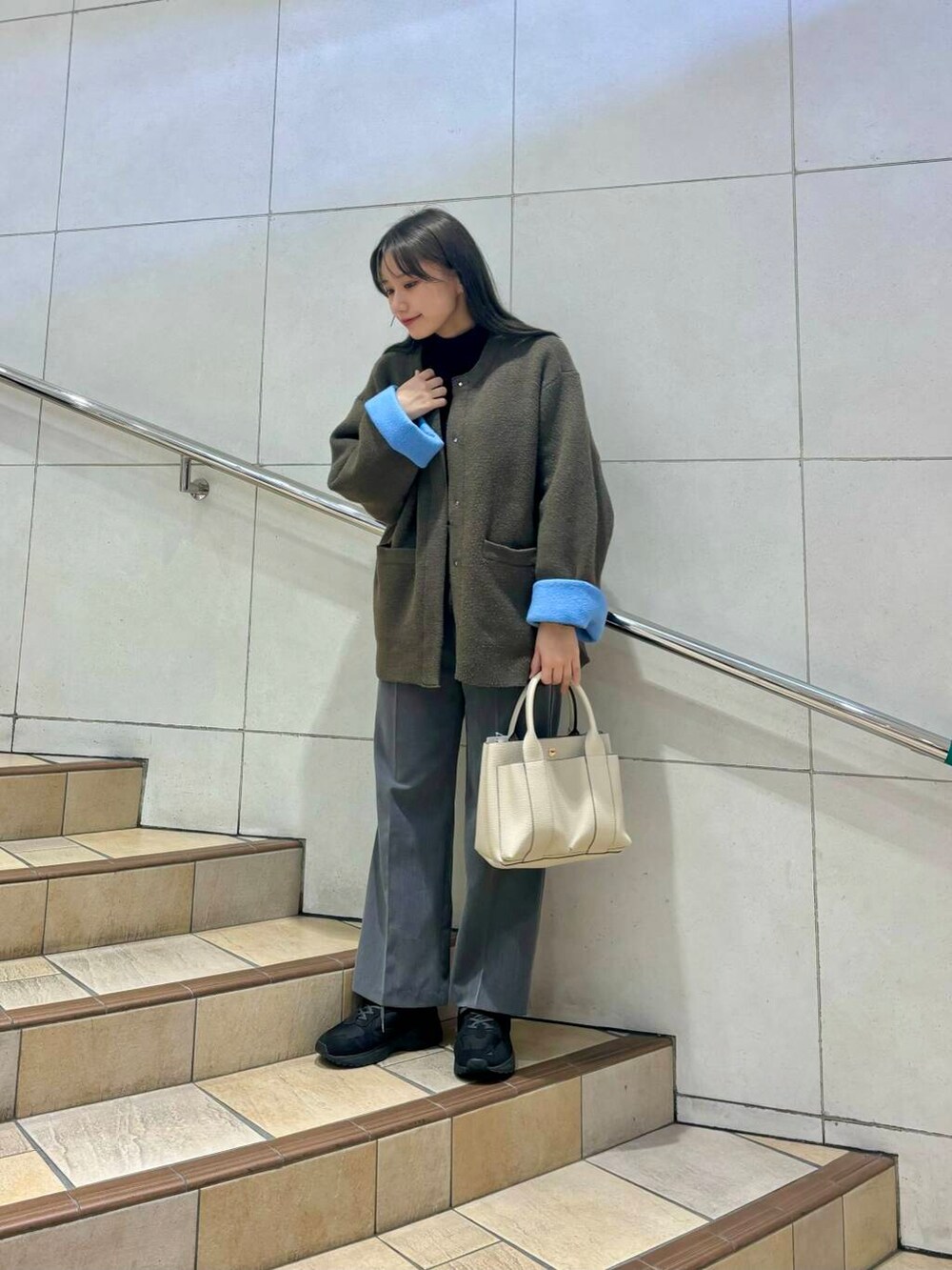 ストレートパンツはウエストがゴムになっていて履きやすいです!