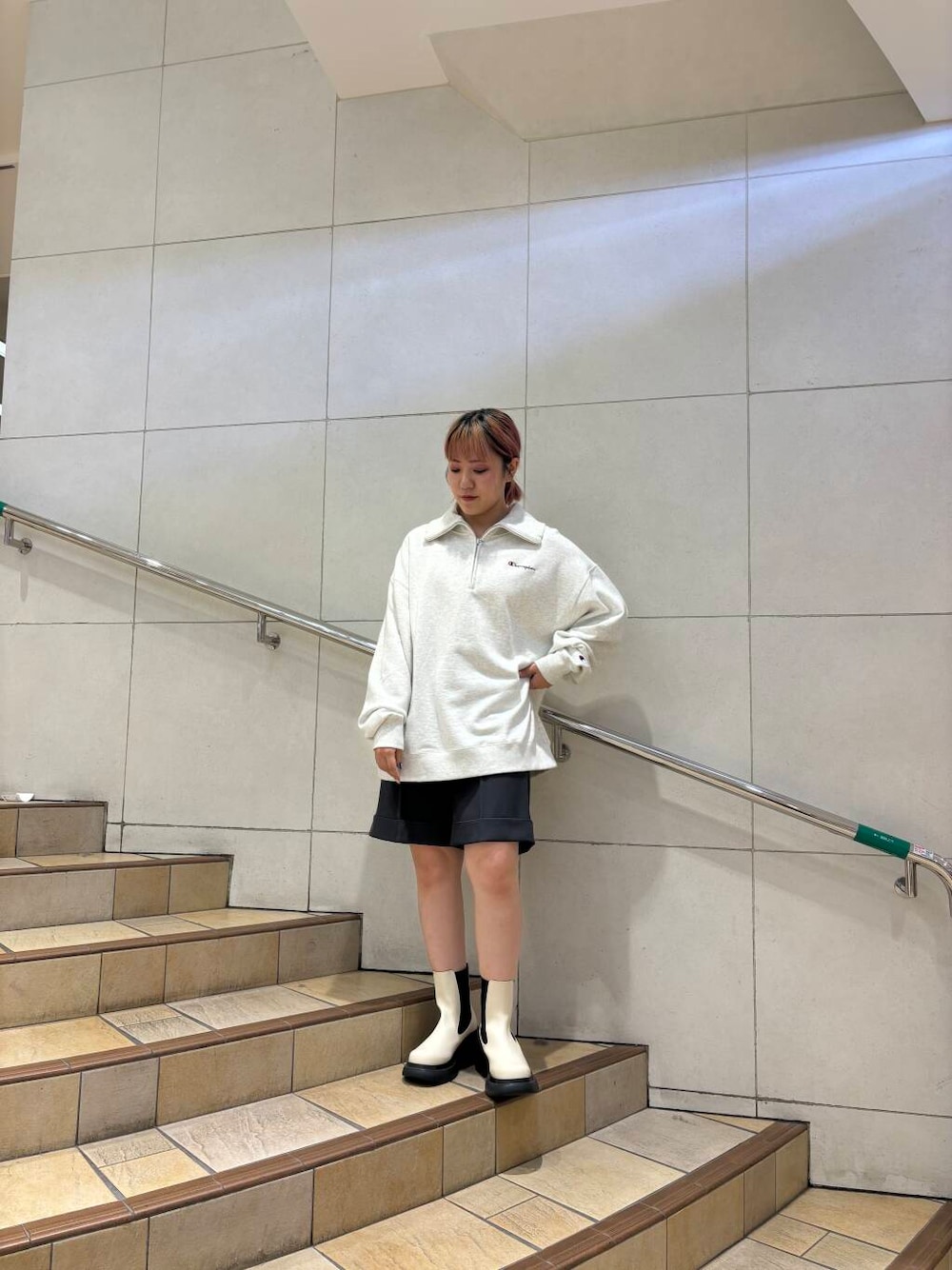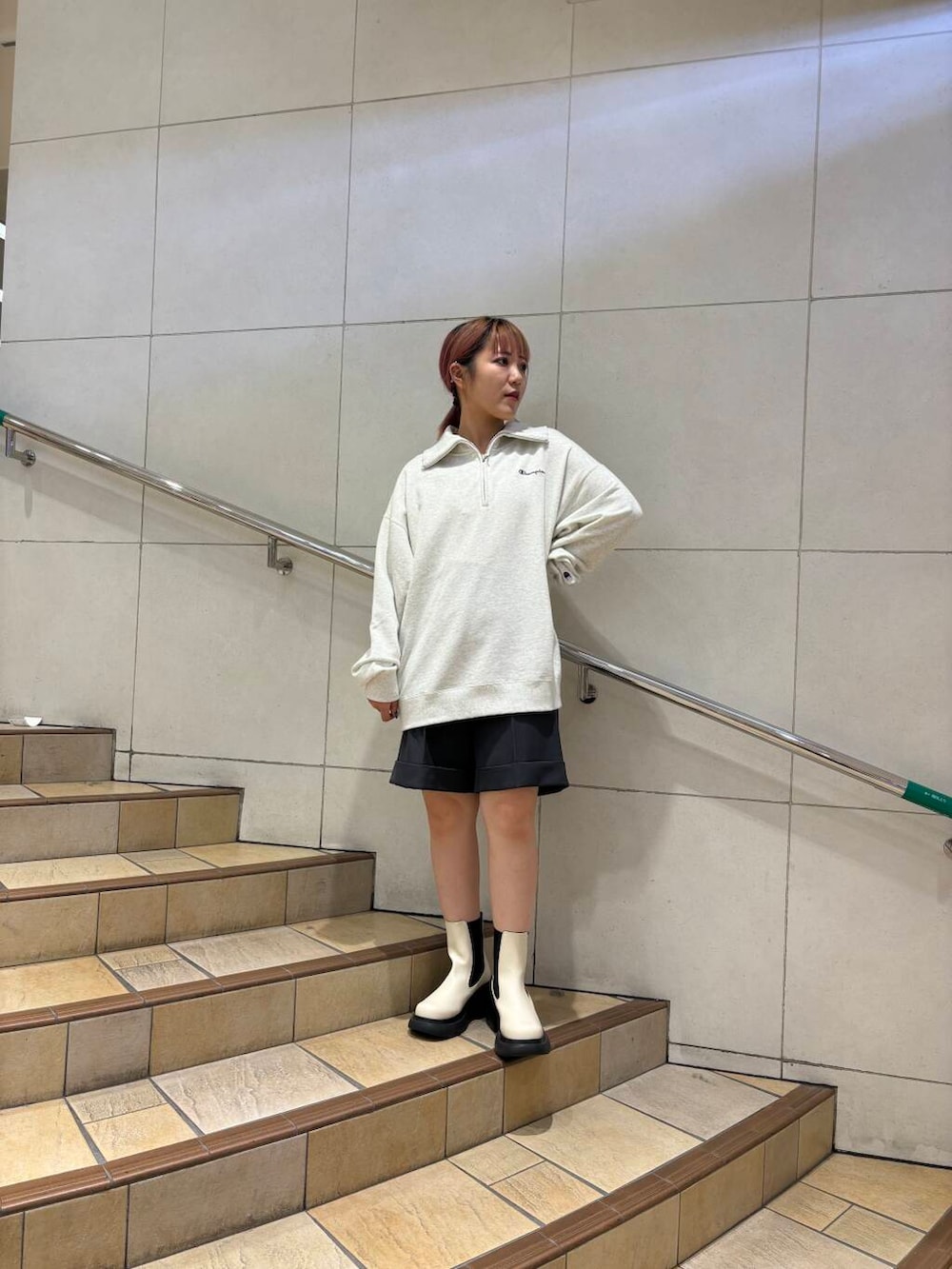 ルーズスウェットにショートパンツでカジュアルライクに◎