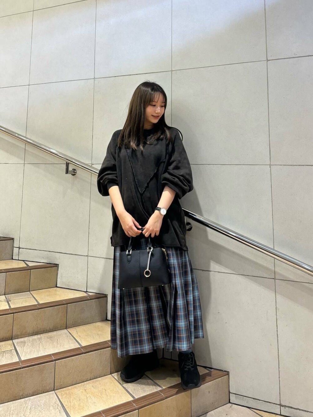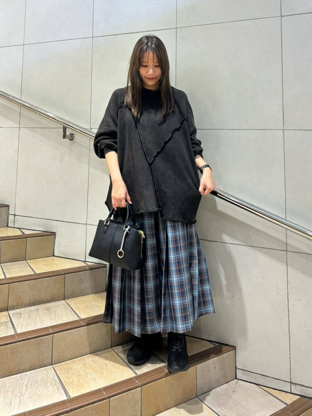 ゆるっと感あるスウェットとプリーツスカートで大人カジュアルコーデ!