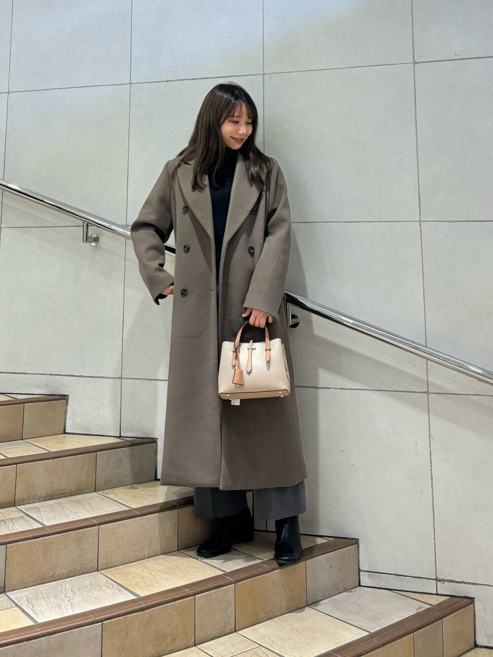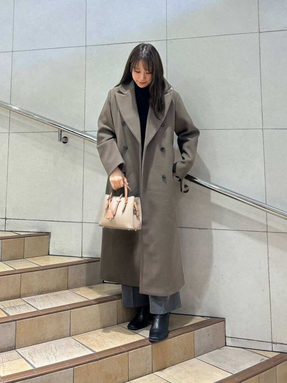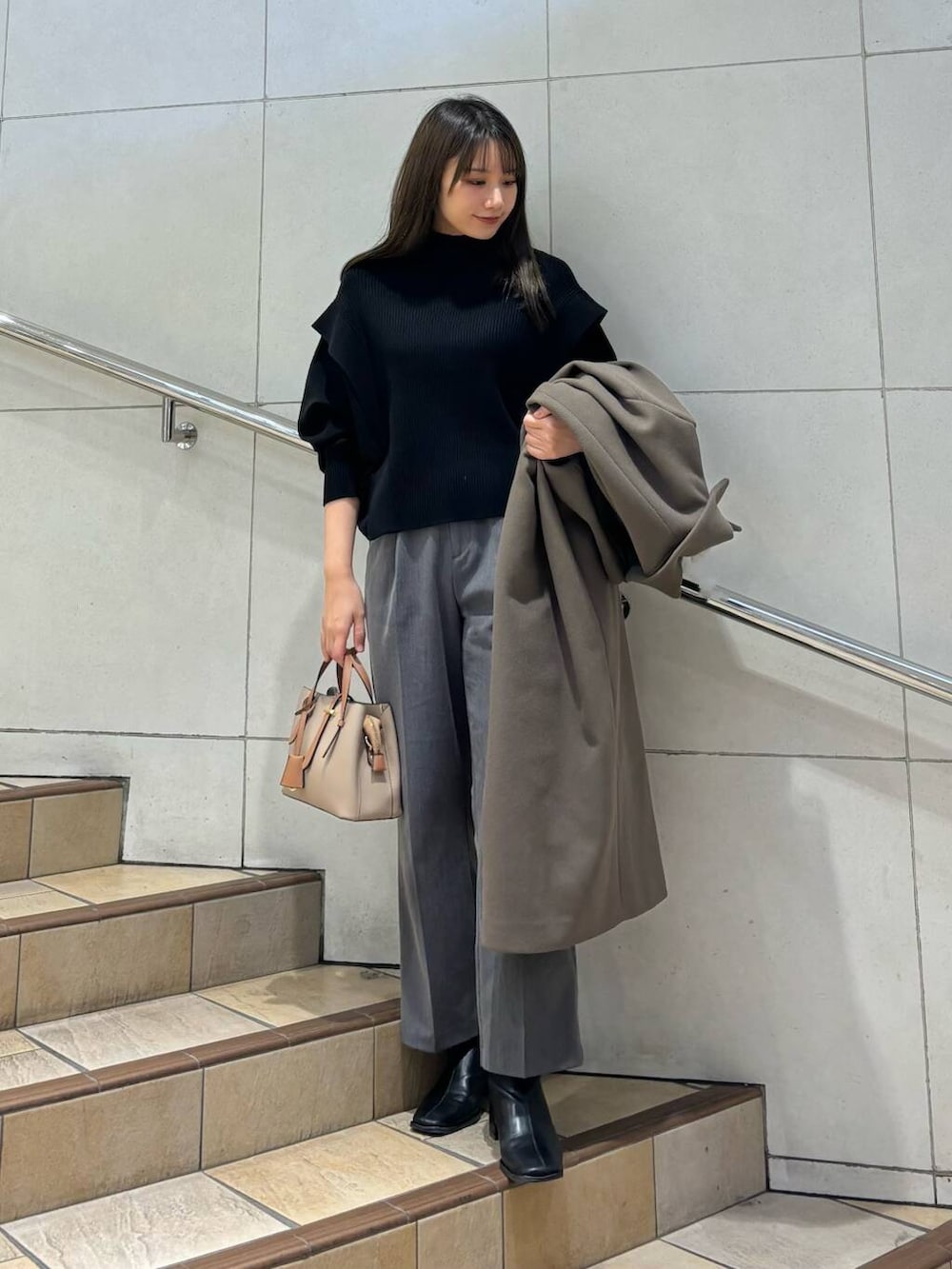 ニットはドルマンスリーブになっておりハイネックで小顔効果と体型カバーも◯