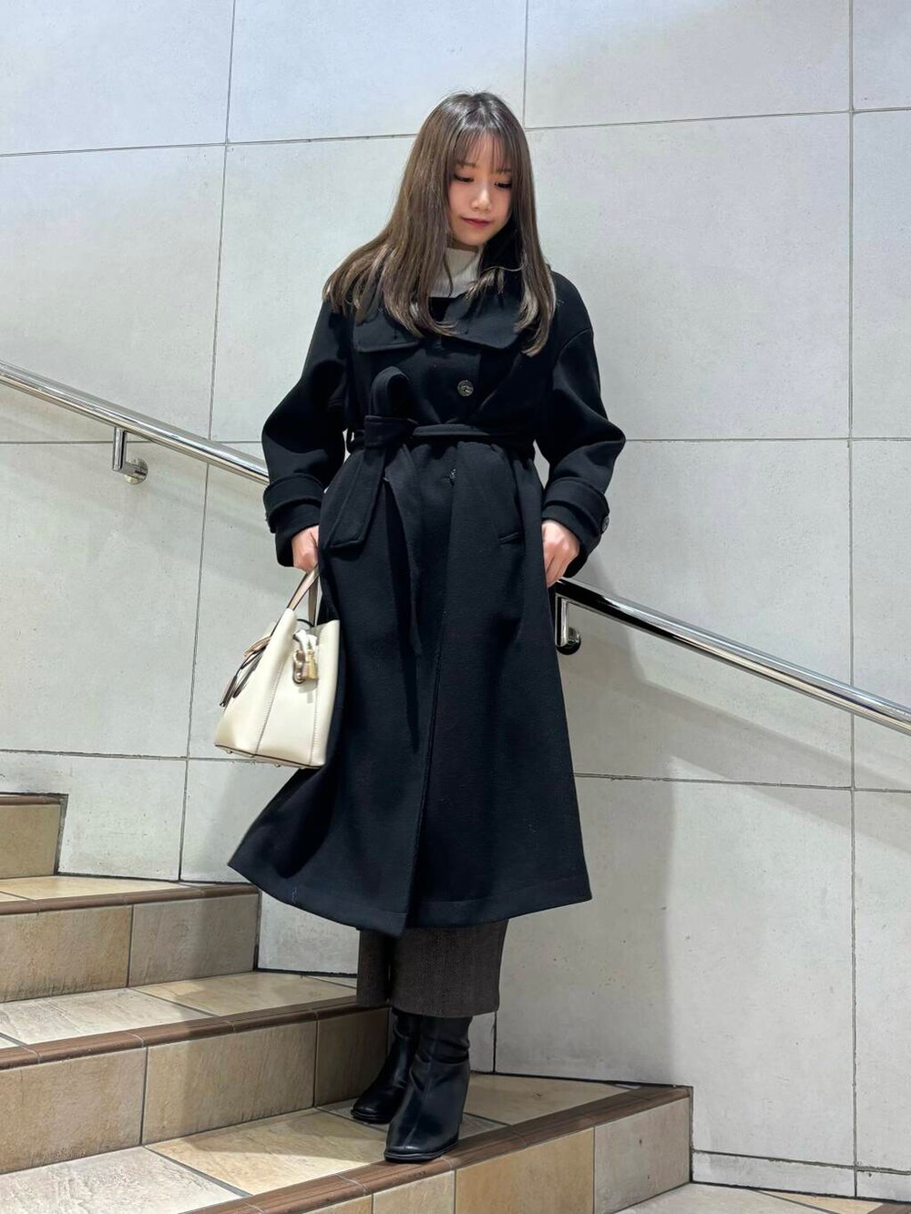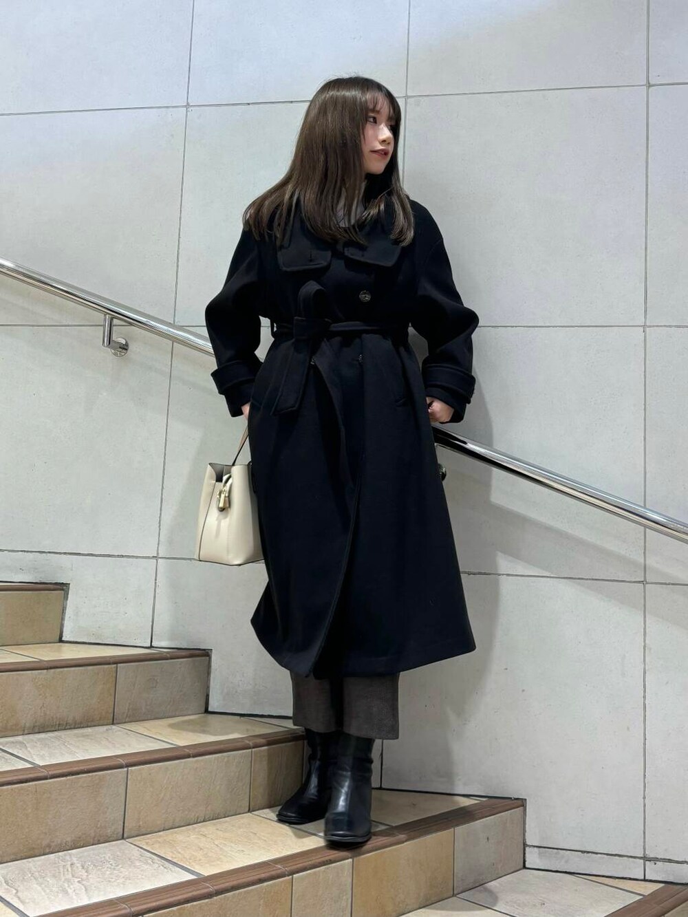 このアウターはスタンドネックにも、折り返しても可愛いシルエット!