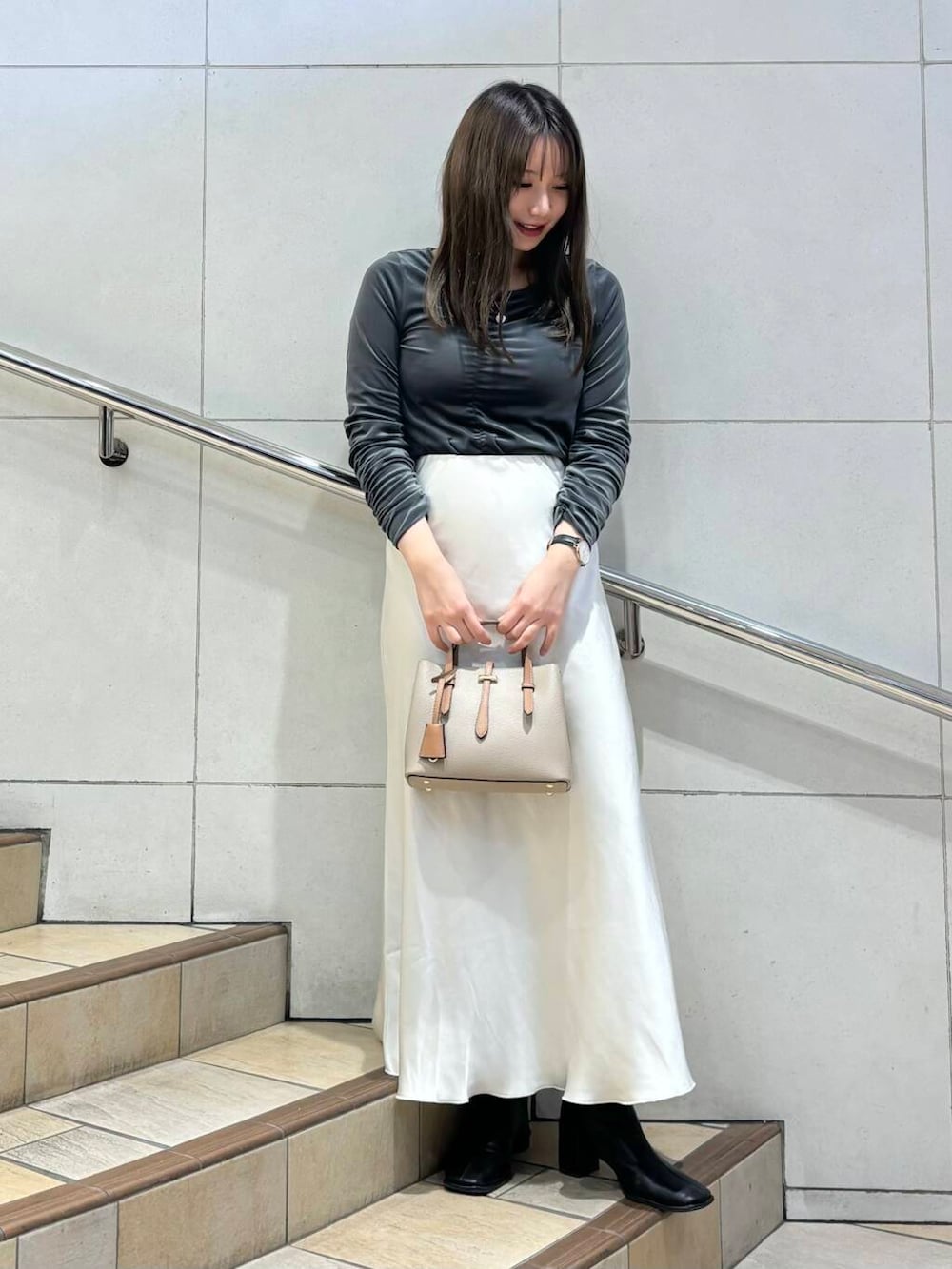 ベロアのトップスは程よい光沢感があり高見え間違いなしです◯