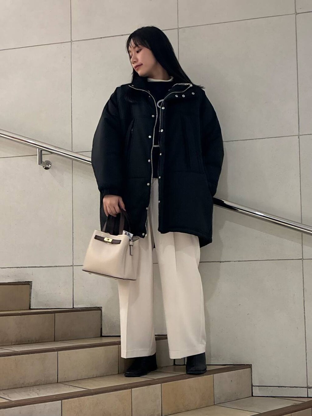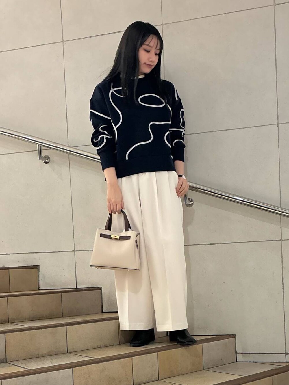 トップスは綺麗めなプルオーバーでデザイン性があるのでシンプルなアイテムにもぴったり!