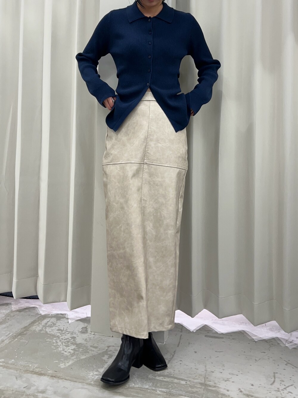 人気のカーディガンとレザースカートを着てみました!!