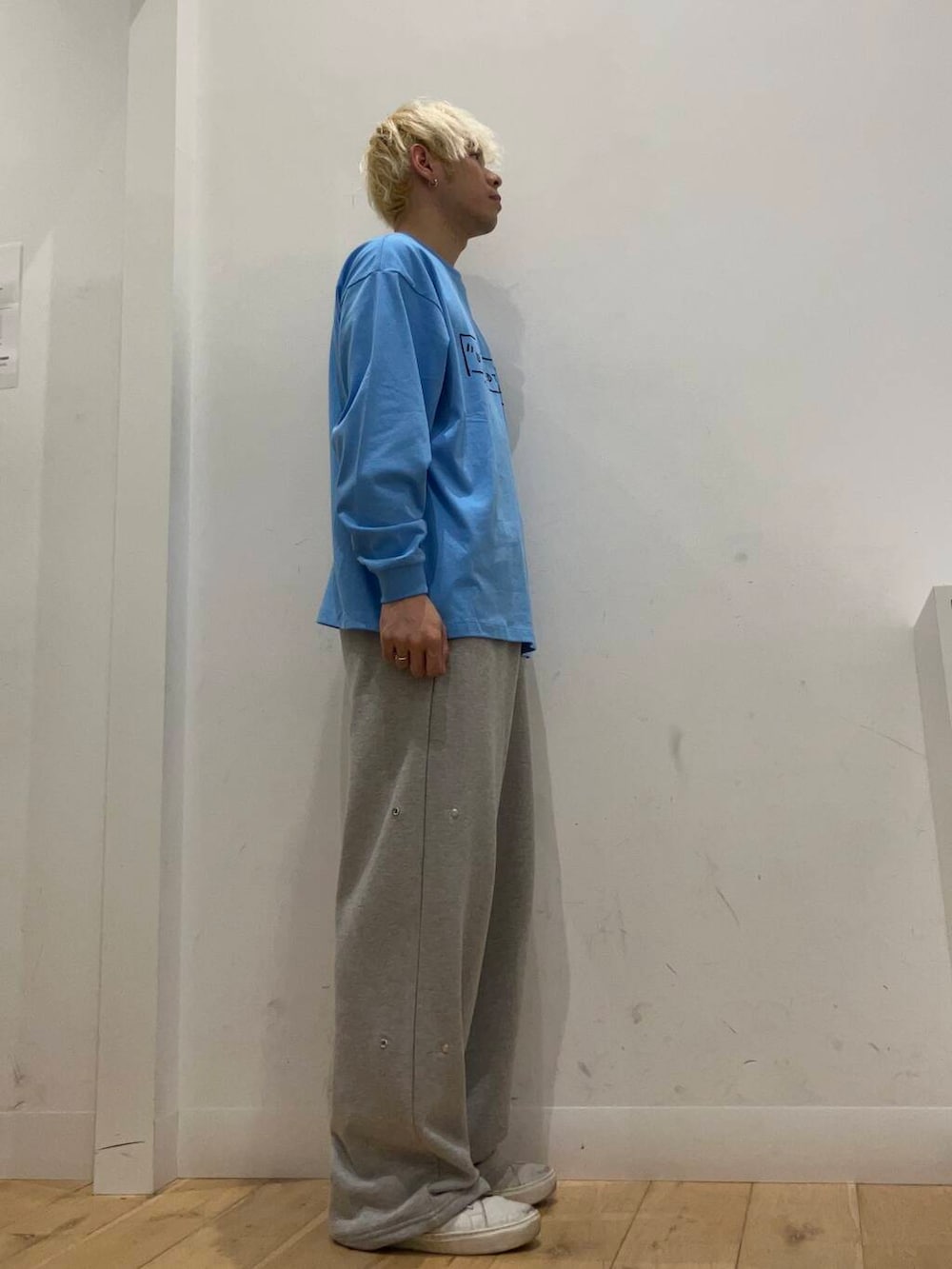 ゆるっとしたシルエットのスウェットパンツは、裾にボタンが付いていてシルエットを変えることができます!