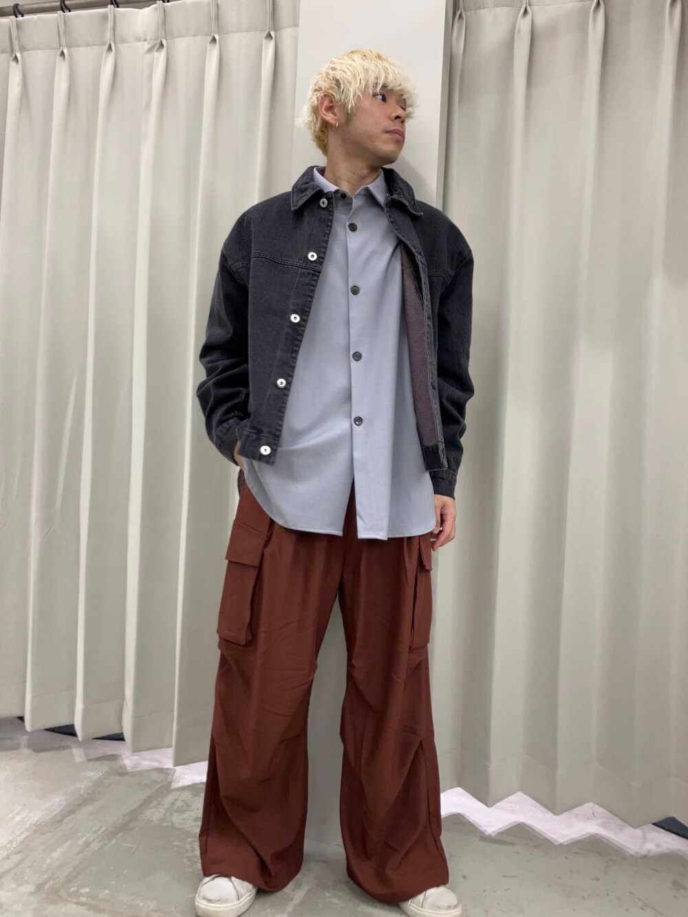 ボトムスは今年定番のワイドカーゴパンツ!新色のブラウンを使ってみました!黒やグレーと相性が良いので、普段ベーシックカラーの多い方にはオススメのお色です!