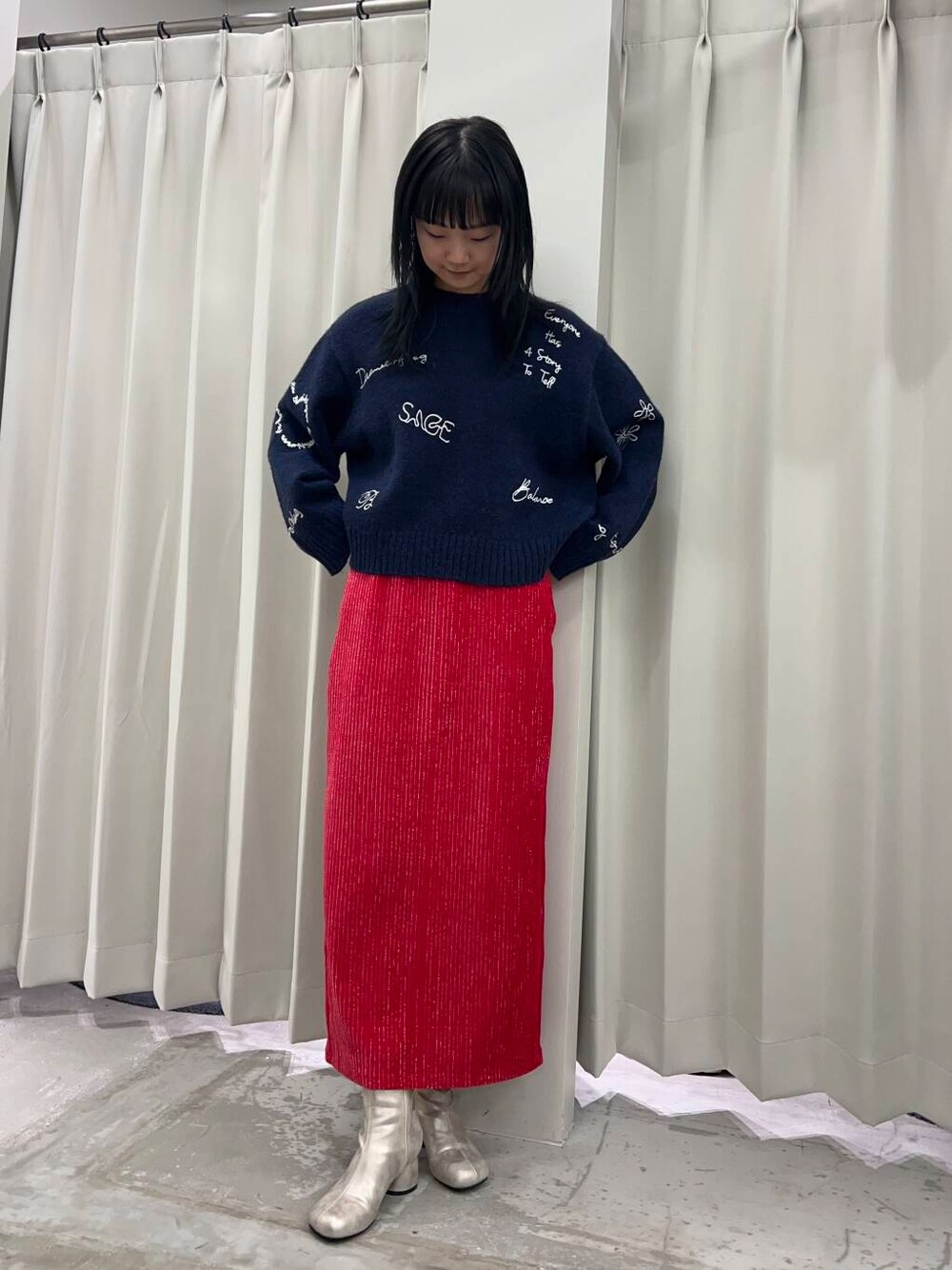 SENSE OF PLACEラメカットコールナロースカート- カラー:
