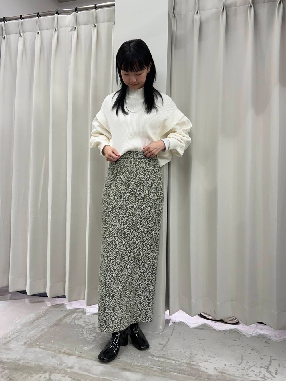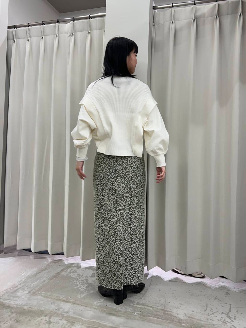 柄物のボトムスにはシンプルなセーター合わせがおすすめです💞