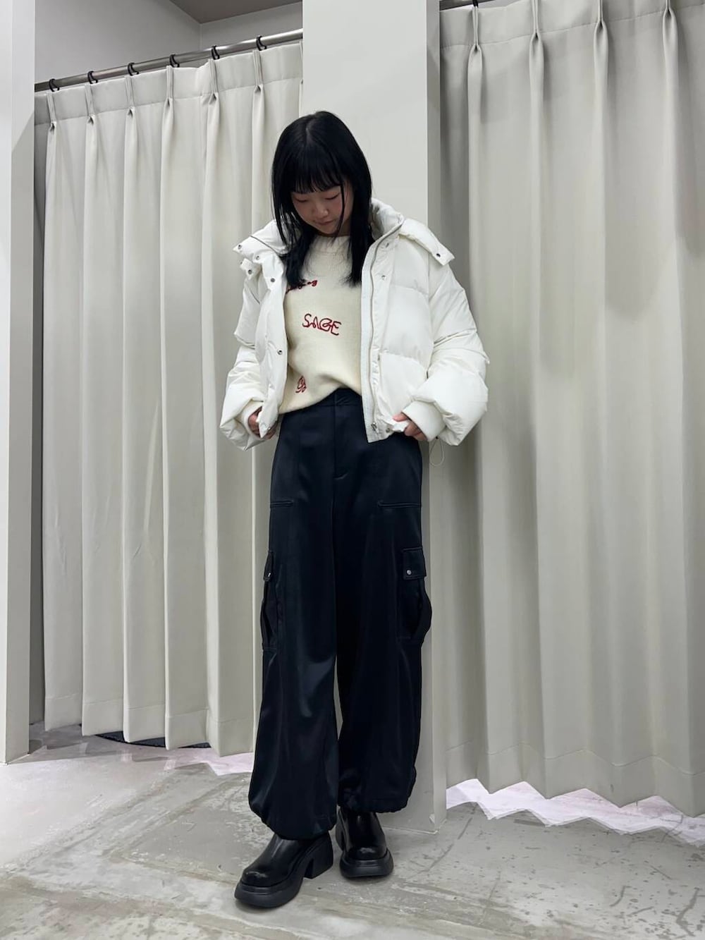 SENSE OF PLACEシャイニーカットカーゴパンツ- 着用カラー: