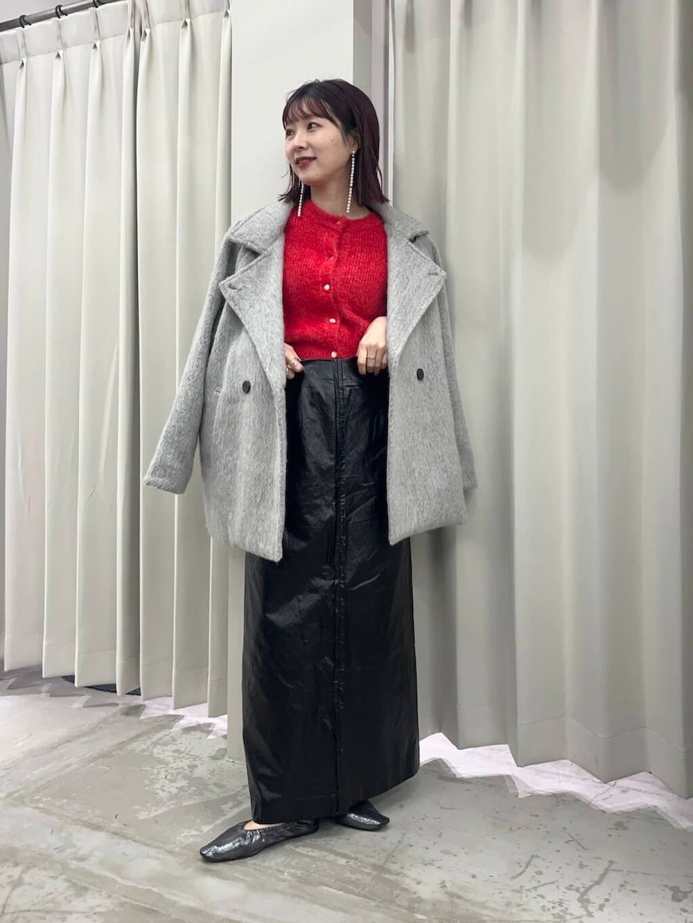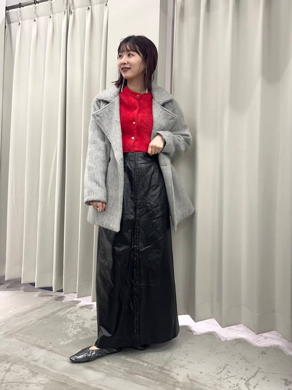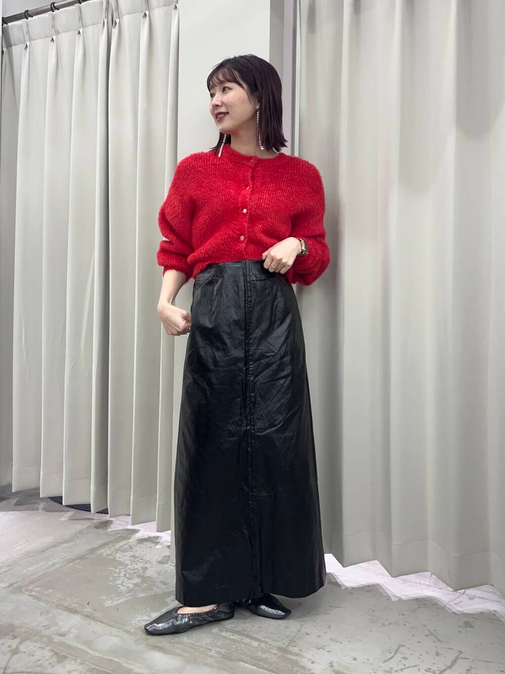 冬にピッタリの赤のカーディガンは