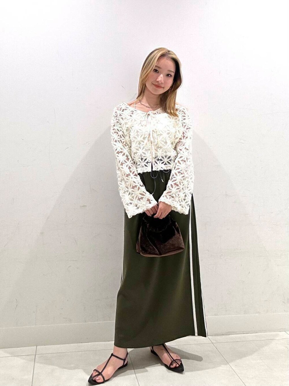 新しく、カーキが入ったので新作のブラウスと合わせました。