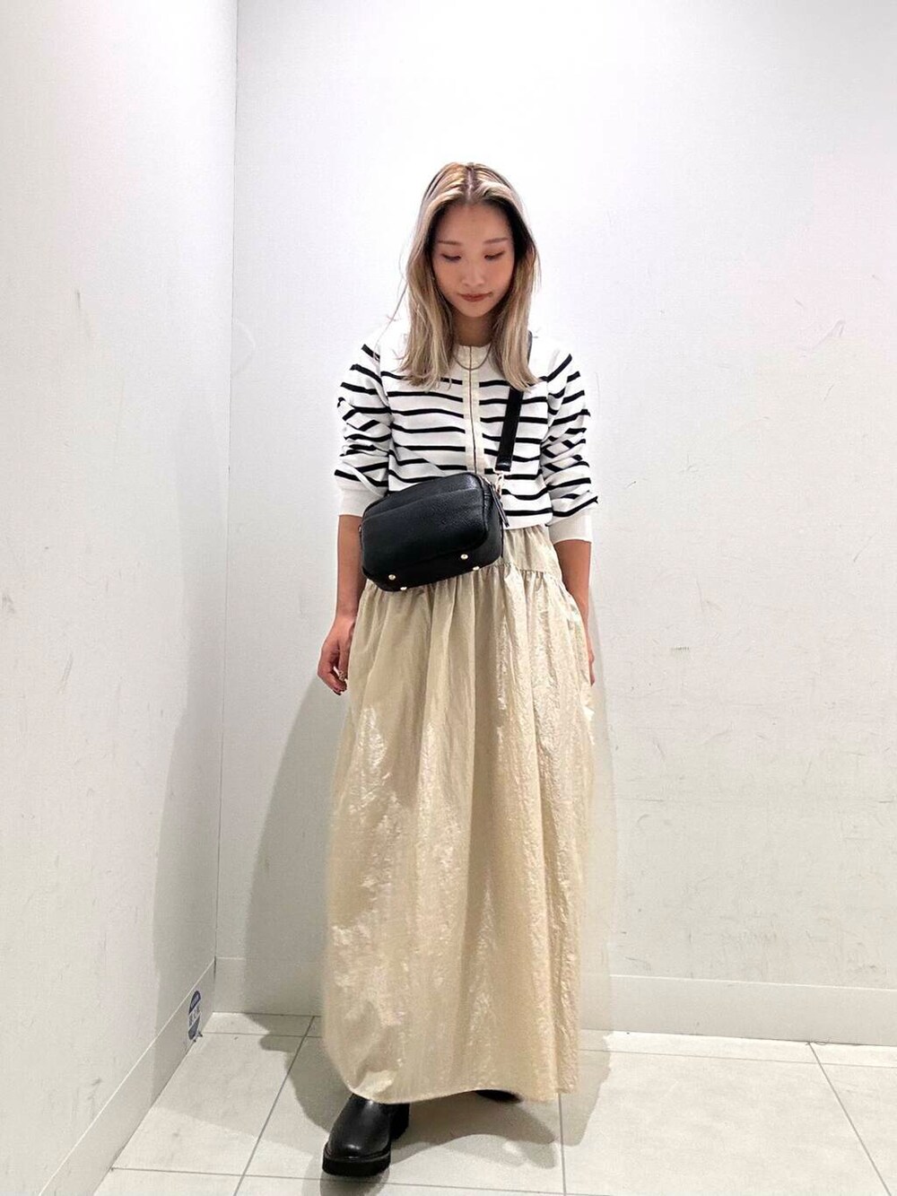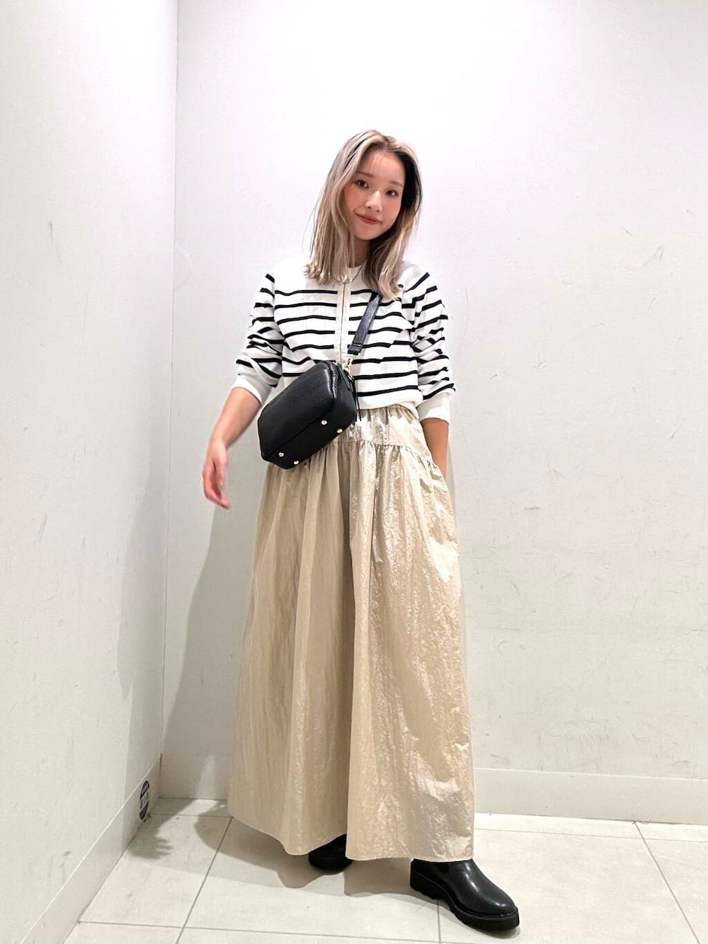 スカートは全ゴムのウエストでとても軽く、シワが目立ちにくい素材感になっています。